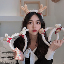 韩国秋冬新款动物兔耳朵鹿角发箍网红卡通毛线编织发卡学生发饰