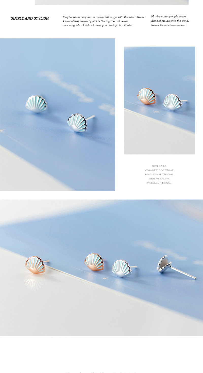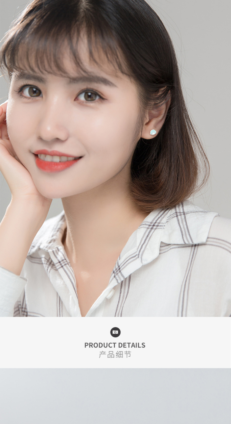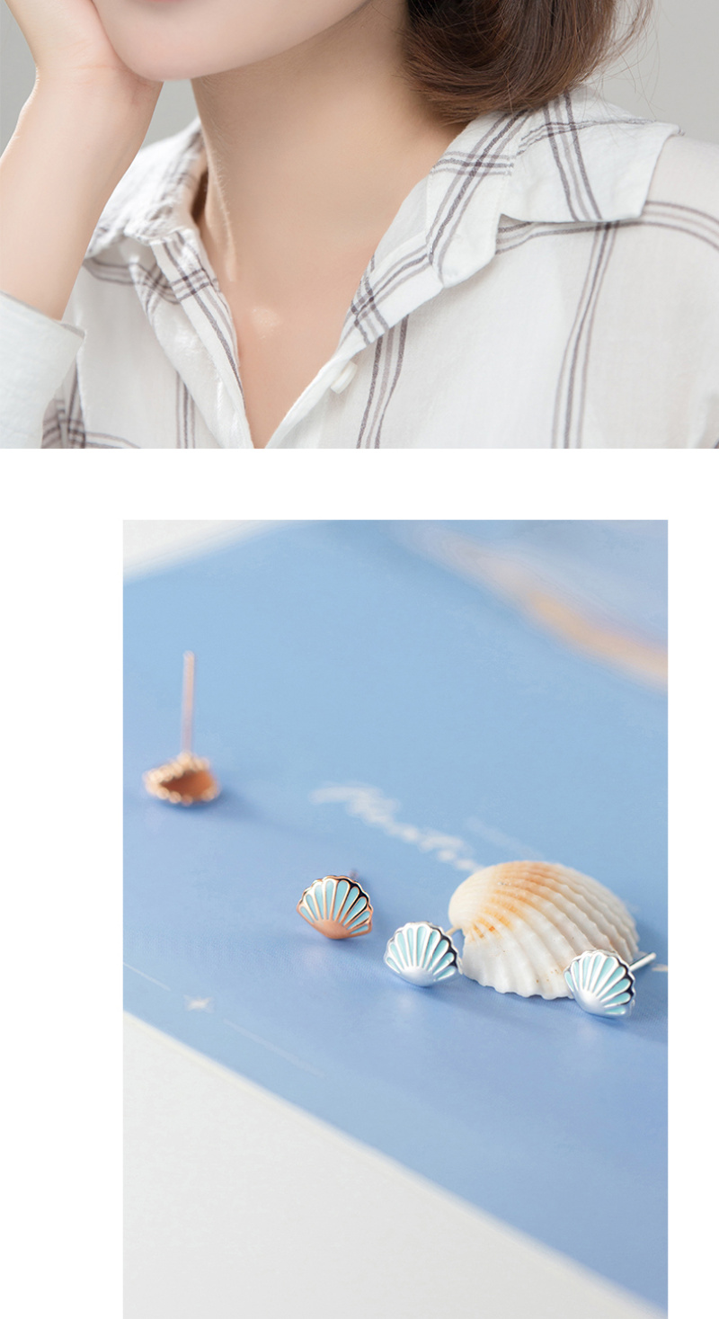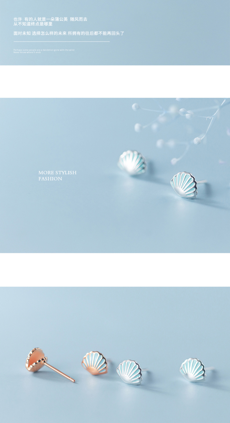 S925银耳钉森系清新蓝色小贝壳耳钉可爱创意学生甜美韩版耳饰银针 English | 投诉