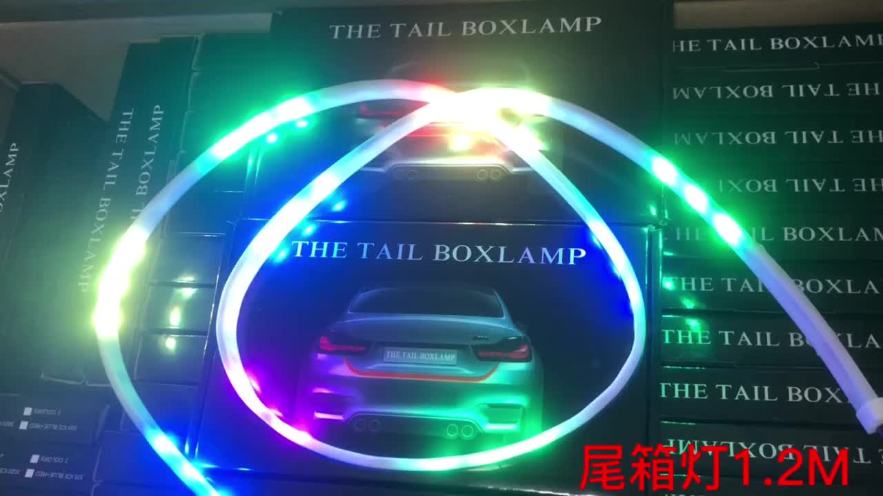 汽车LED尾箱灯,多模式装饰灯彩灯条。直行 七彩跑马,刹车红光爆闪,转向黄光,倒车冰蓝光。汽车尾部装饰灯条。