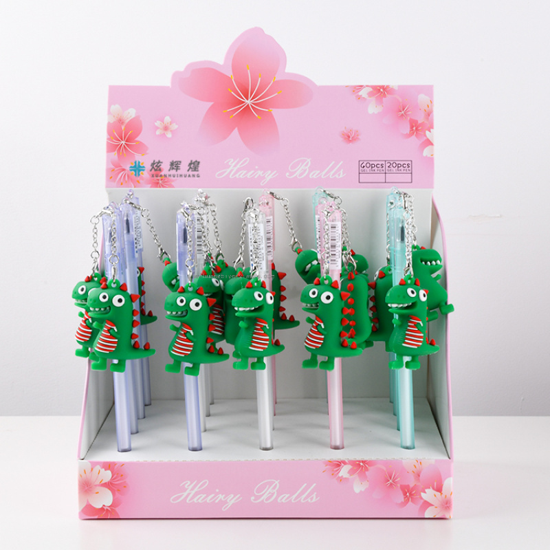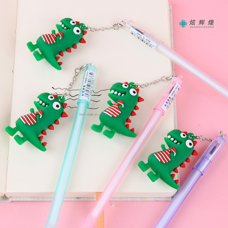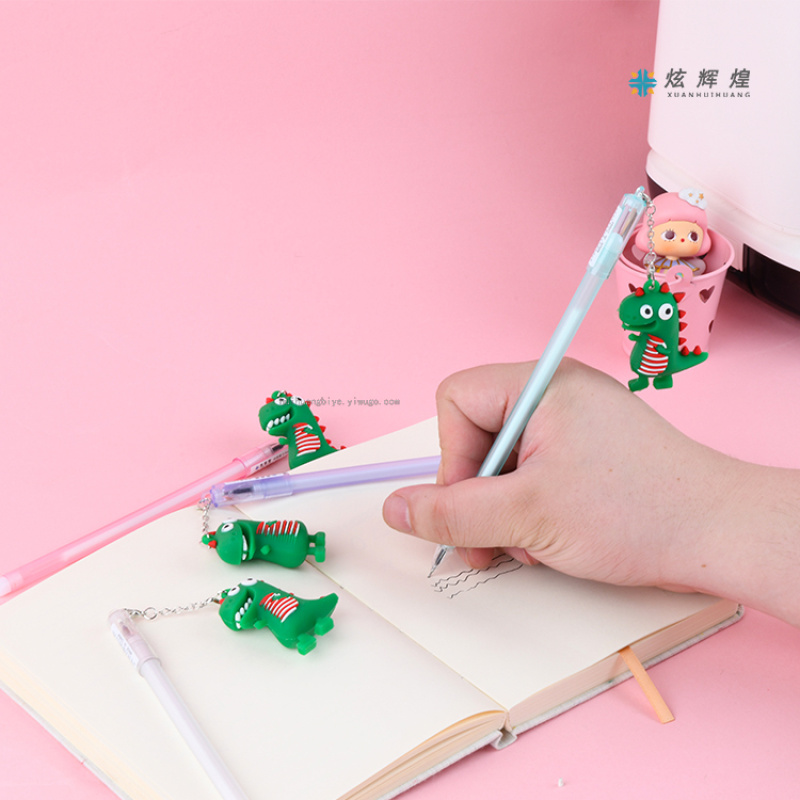 可爱恐龙挂件中性笔学生文具用品创意卡通水性笔幼儿园礼物批发