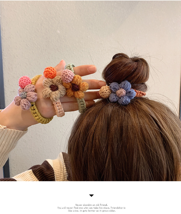 韩版ins秋冬可爱毛线花朵头绳 韩国皮筋女士粗发圈高弹力发绳发饰