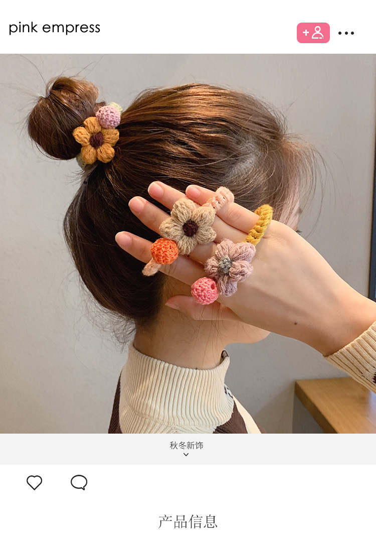 韩版ins秋冬可爱毛线花朵头绳 韩国皮筋女士粗发圈高弹力发绳发饰 投诉