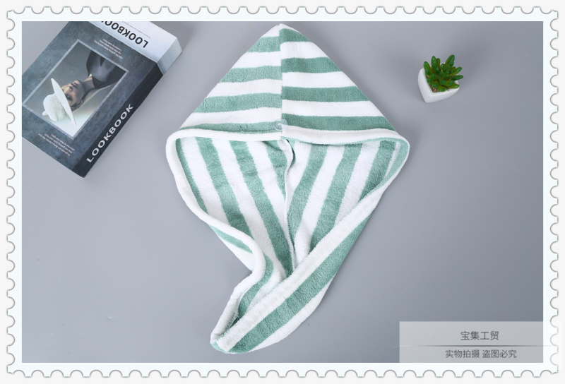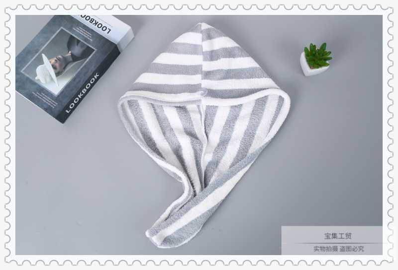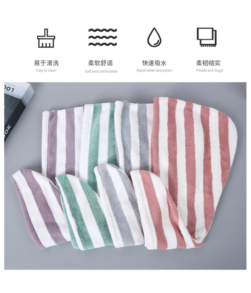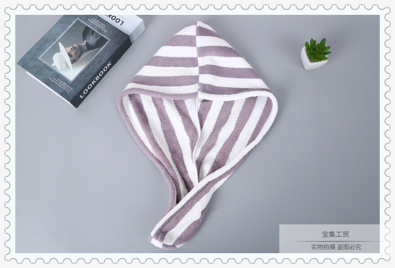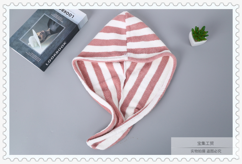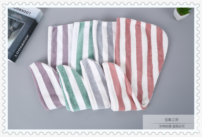 产品名称:双色条纹图案干发帽女 吸水速干不掉毛加厚浴帽 擦洗包头巾束发带