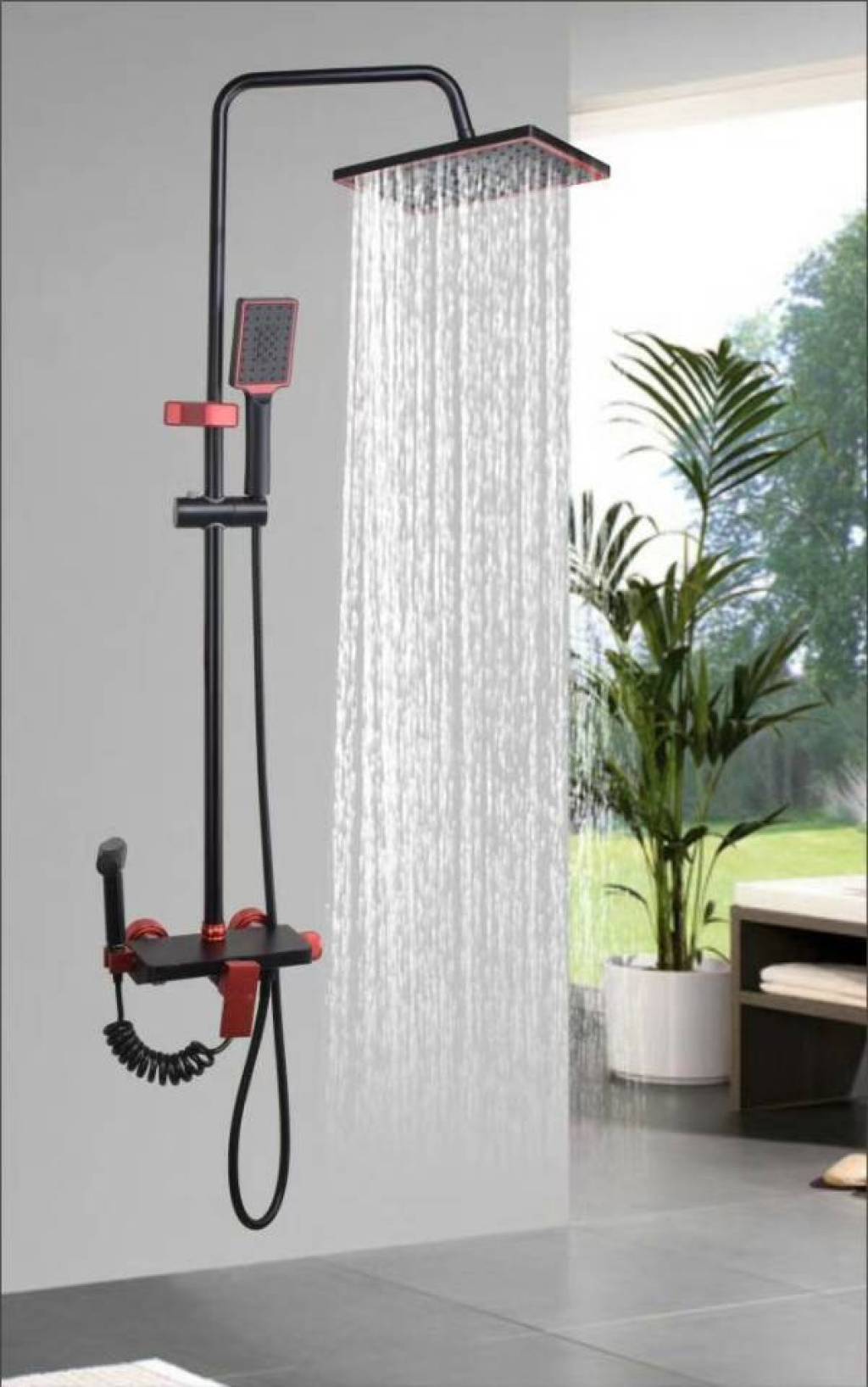 四档带妇洗四功能大花洒琴键带花洒新款洗手盆水龙头黑红各种颜色