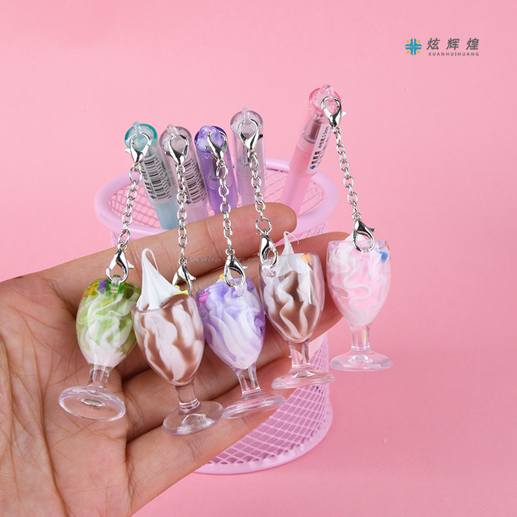 冰淇淋杯中性笔 创意可爱挂件吊坠笔学习考试签字笔学生黑水笔