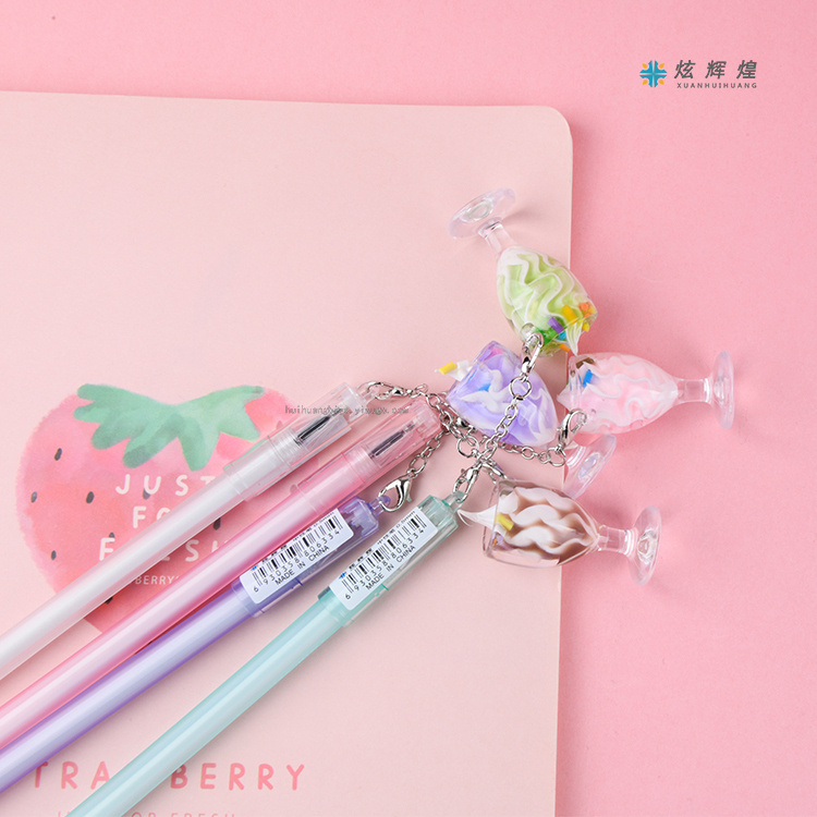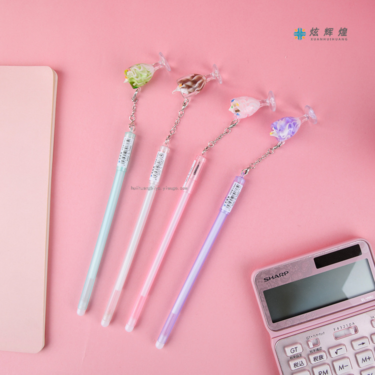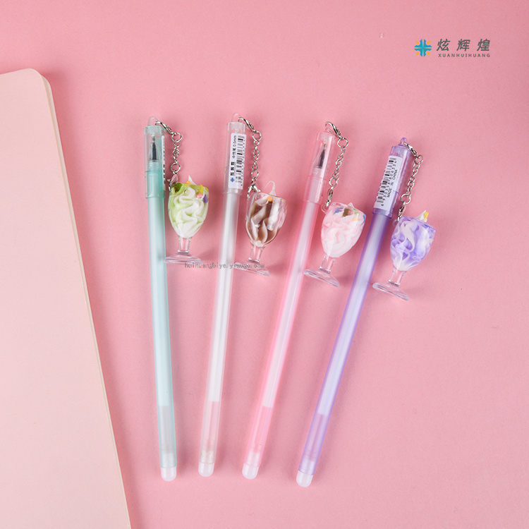 冰淇淋杯中性笔 创意可爱挂件吊坠笔学习考试签字笔学生黑水笔 投诉
