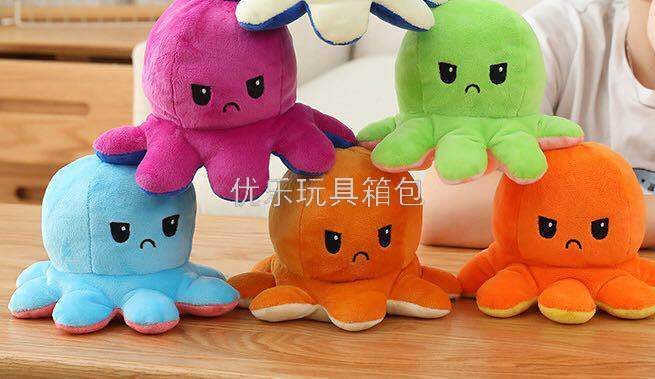 爆款翻面章鱼零钱包 外贸毛绒双色章鱼挂件 投诉