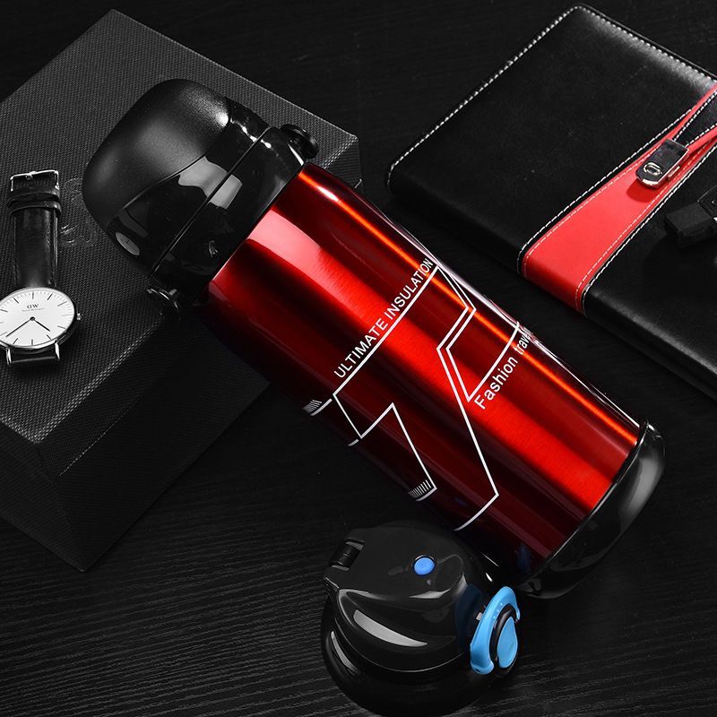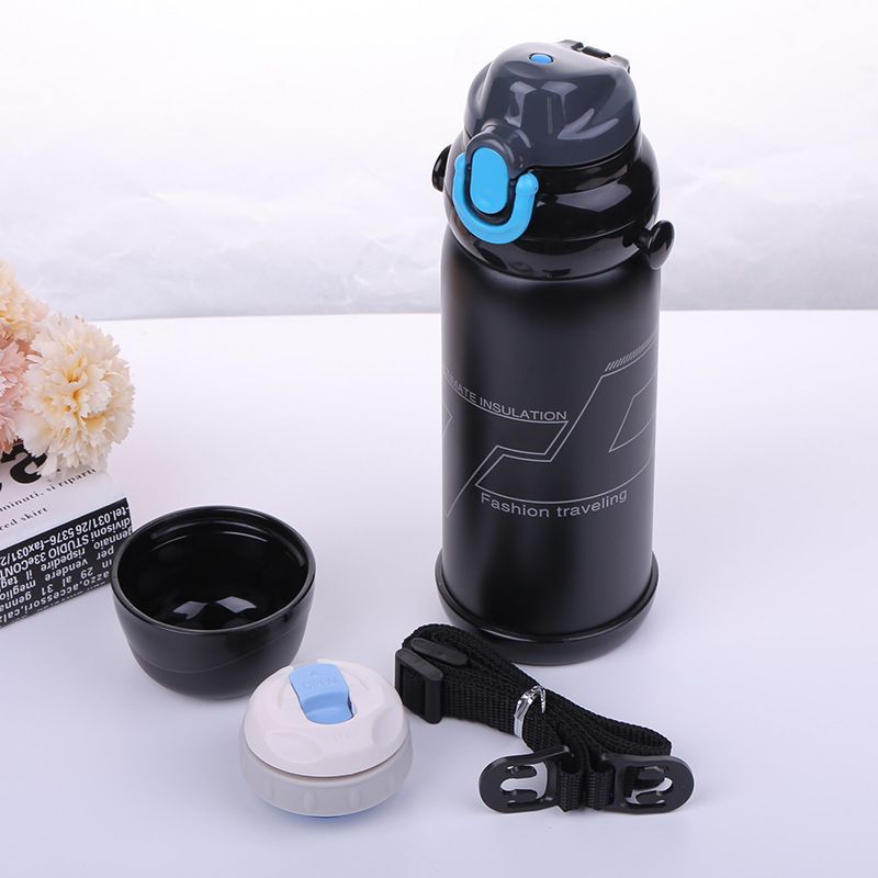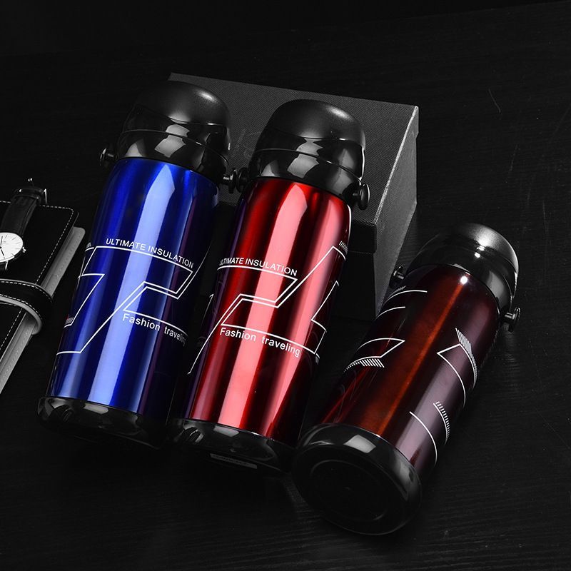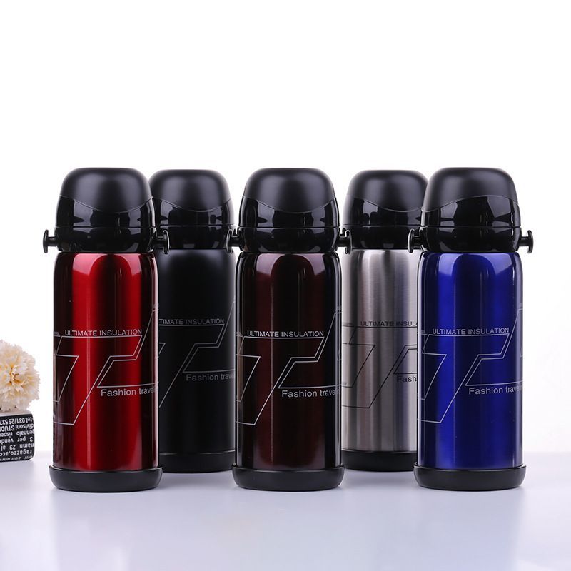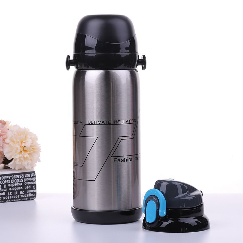 800ml双层不锈钢双盖户外水壶