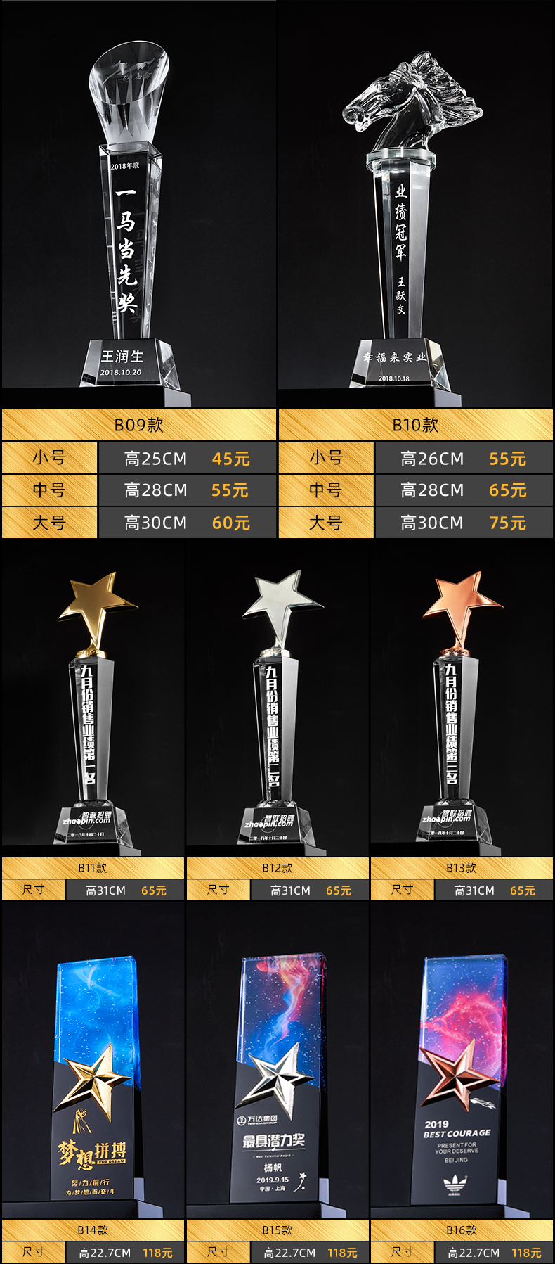 银新水晶奖杯奖牌 14年