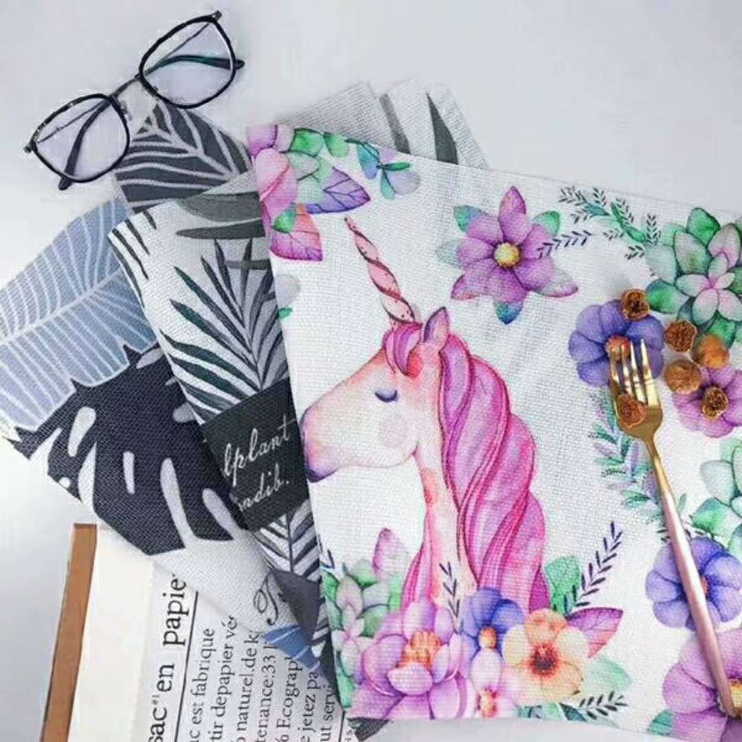 印花树叶花朵ins风PVC餐垫 隔热垫西餐桌杯垫防烫餐盘碗防滑杯垫