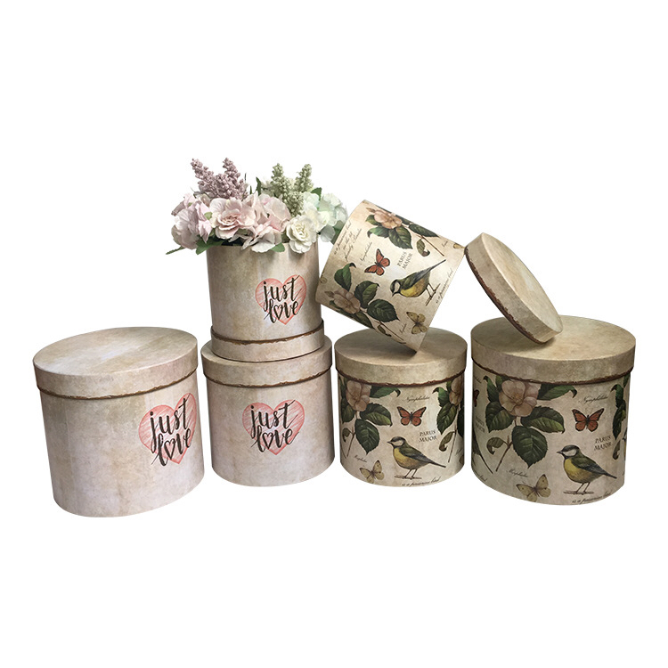 木纹清新鲜花抱抱桶三件套7959