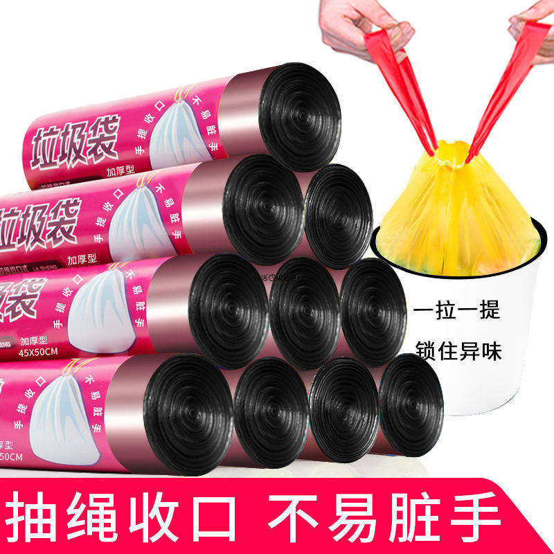 抽绳垃圾袋手提式加厚家用一次性黑色大号厨房穿绳式塑料袋子批发 投诉