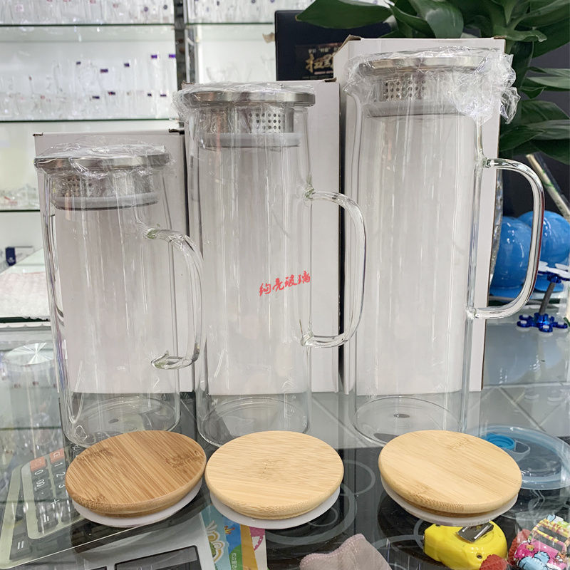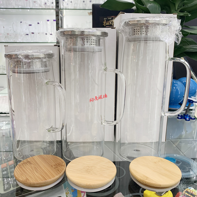 高硼硅玻璃壶直升壶 竹盖耐热凉水壶不锈钢盖子 冷水壶
