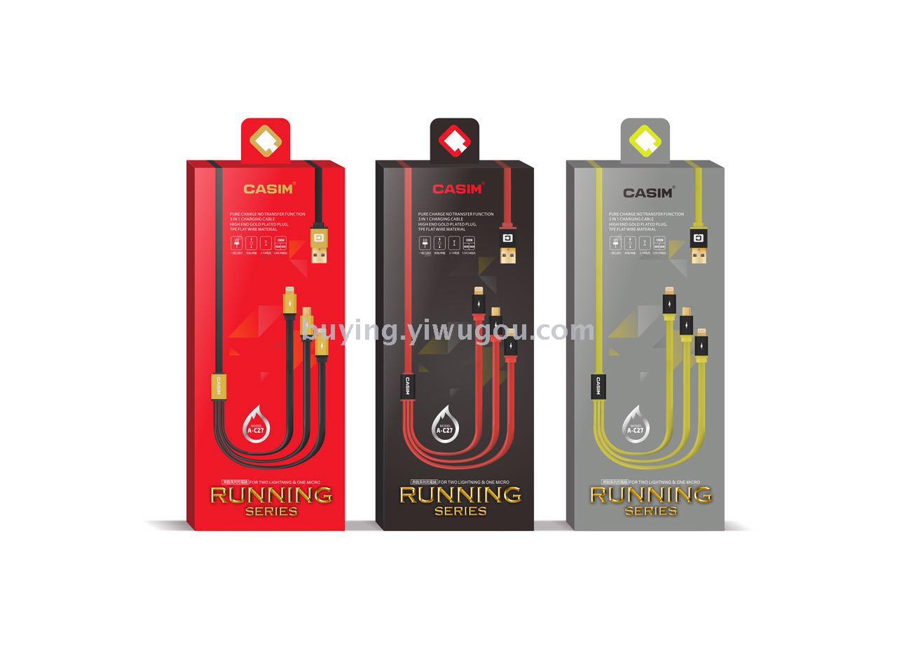 卡思铭C27一拖三快充数据线 type-c安卓苹果iPhone三合一连接线