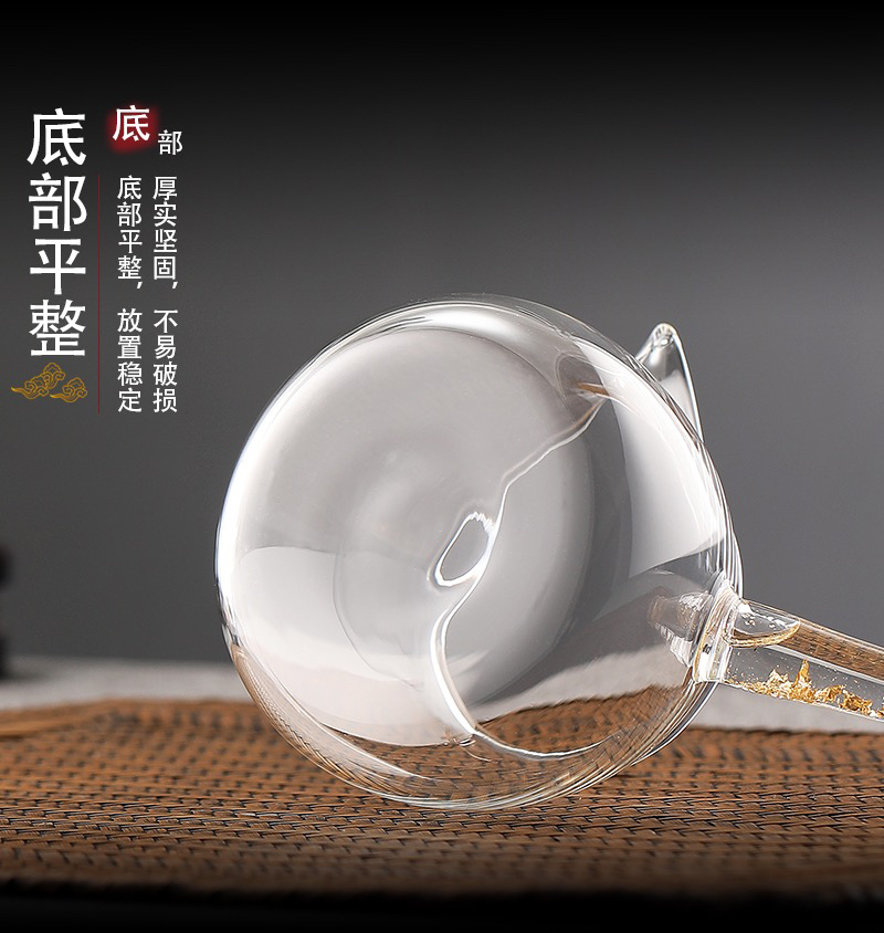 耐热玻璃侧把金箔公道杯藏金手柄茶海功夫茶具分茶器防烫手 投诉