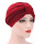 秋冬新款外贸爆款 包头巾 双色拼接褶皱穆斯林包头帽 印度帽