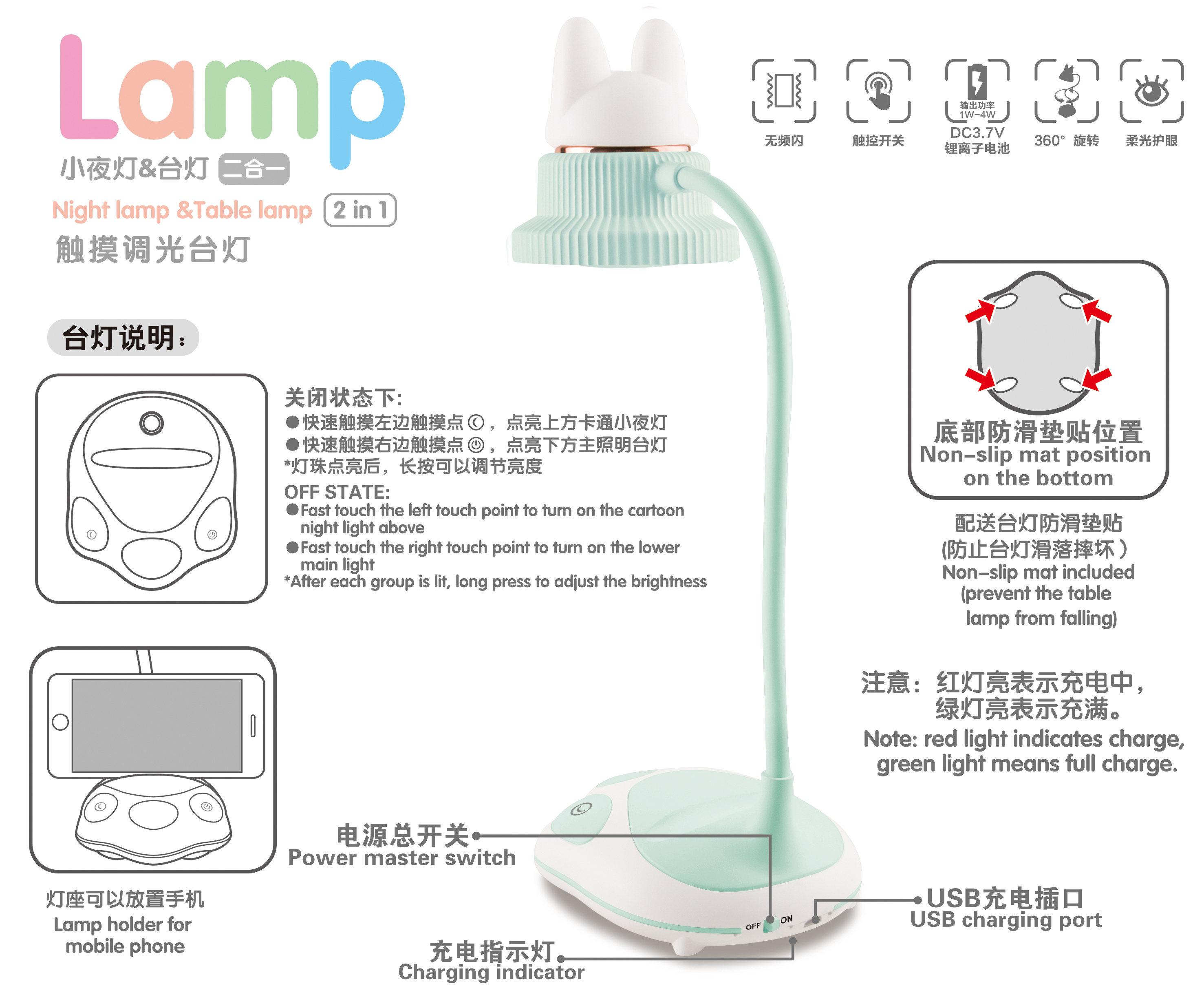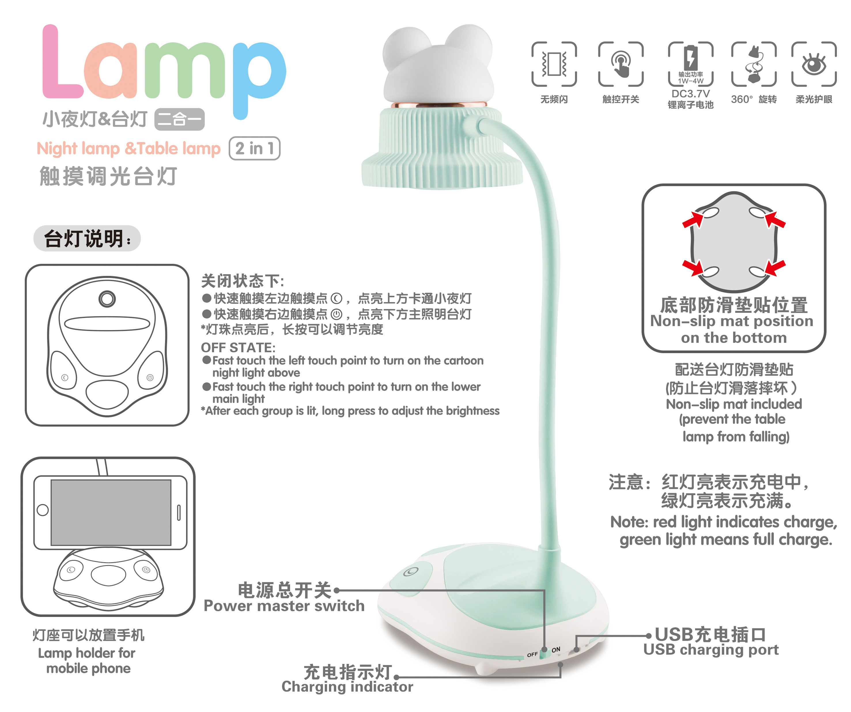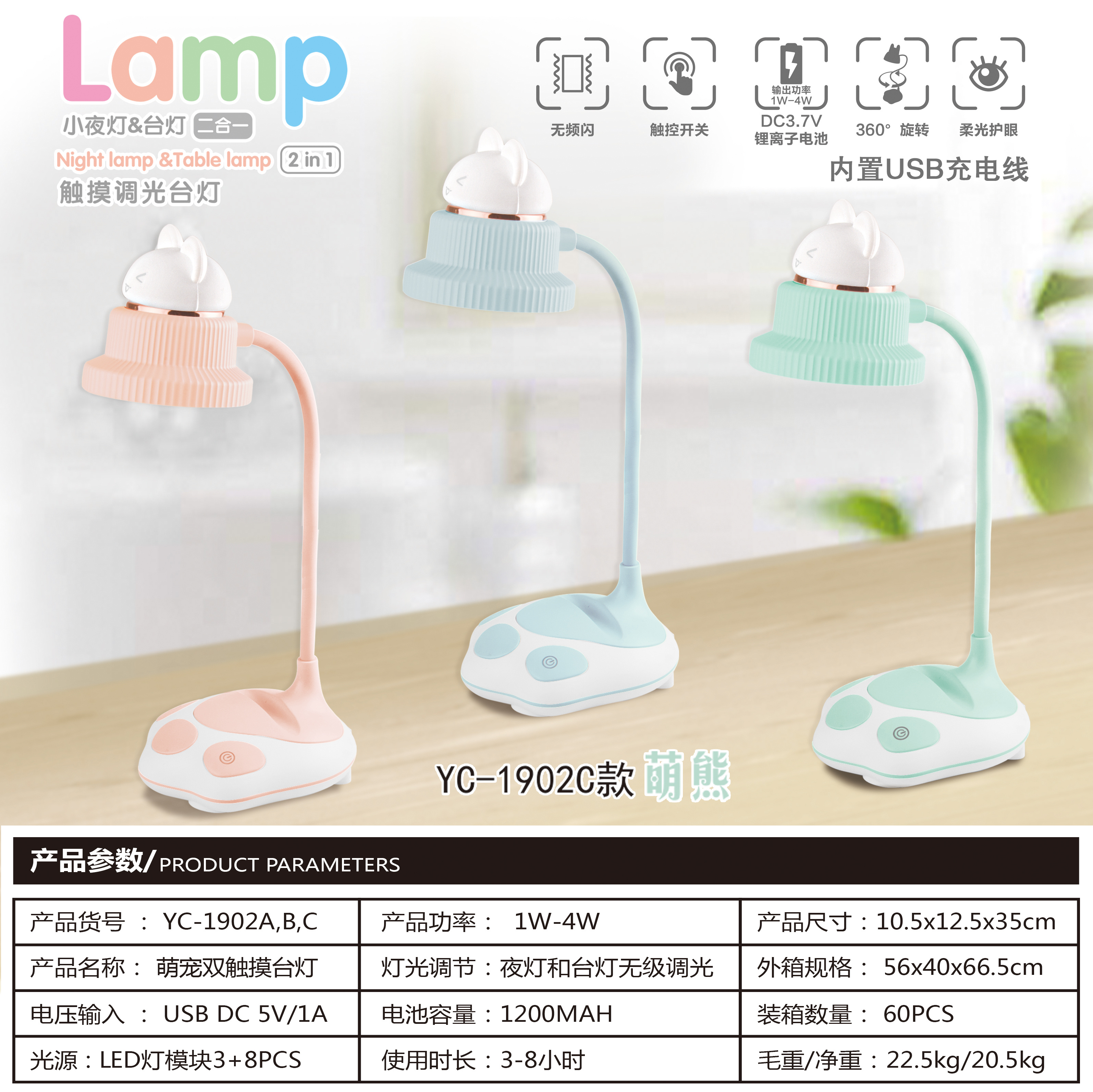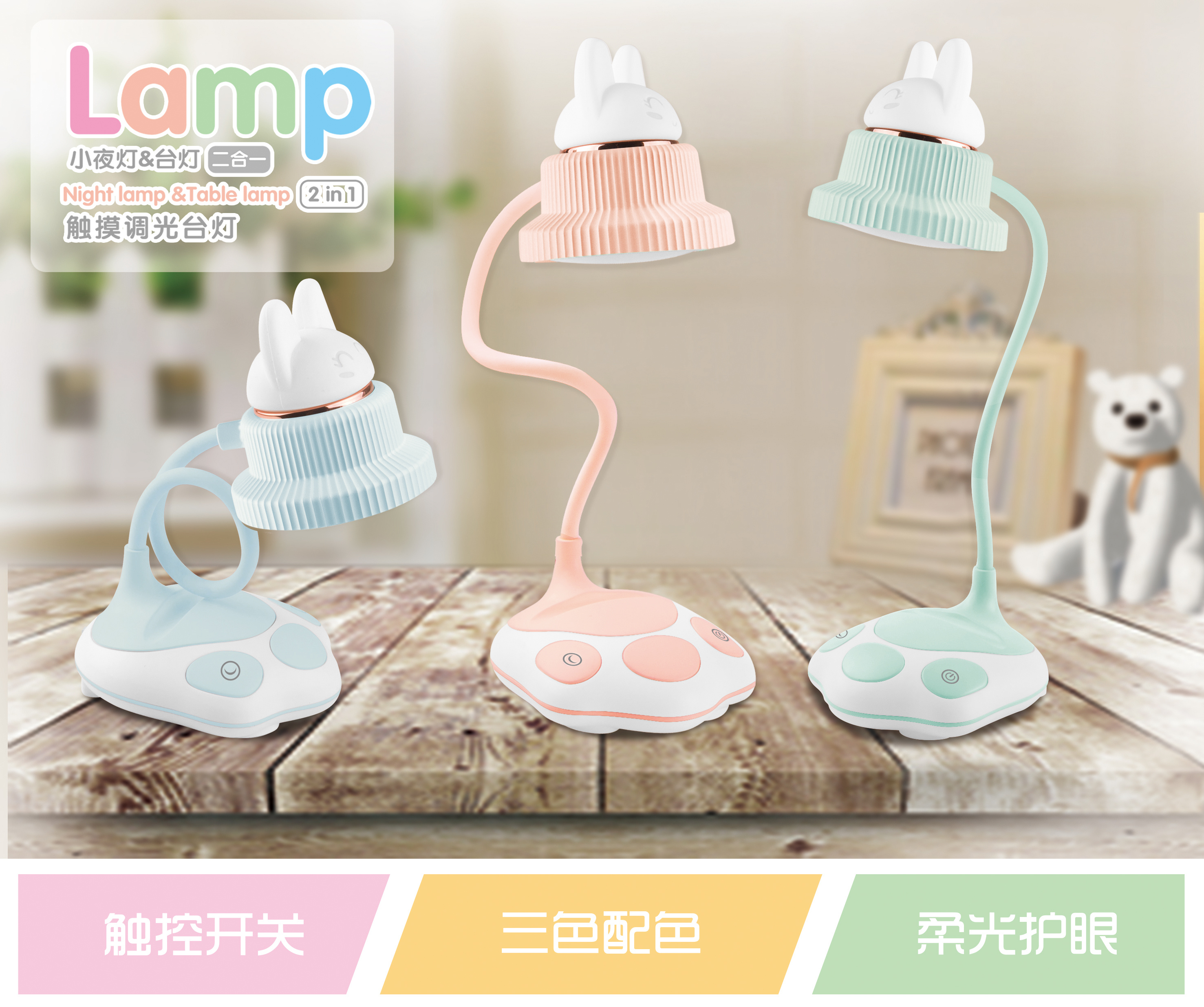 新款卡通台灯 LED台灯 触摸三档卡通台灯