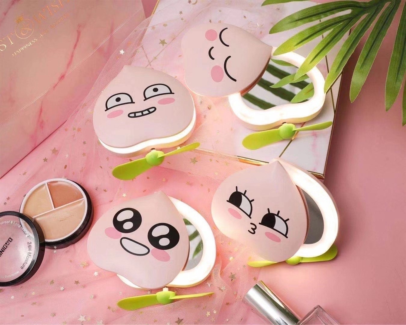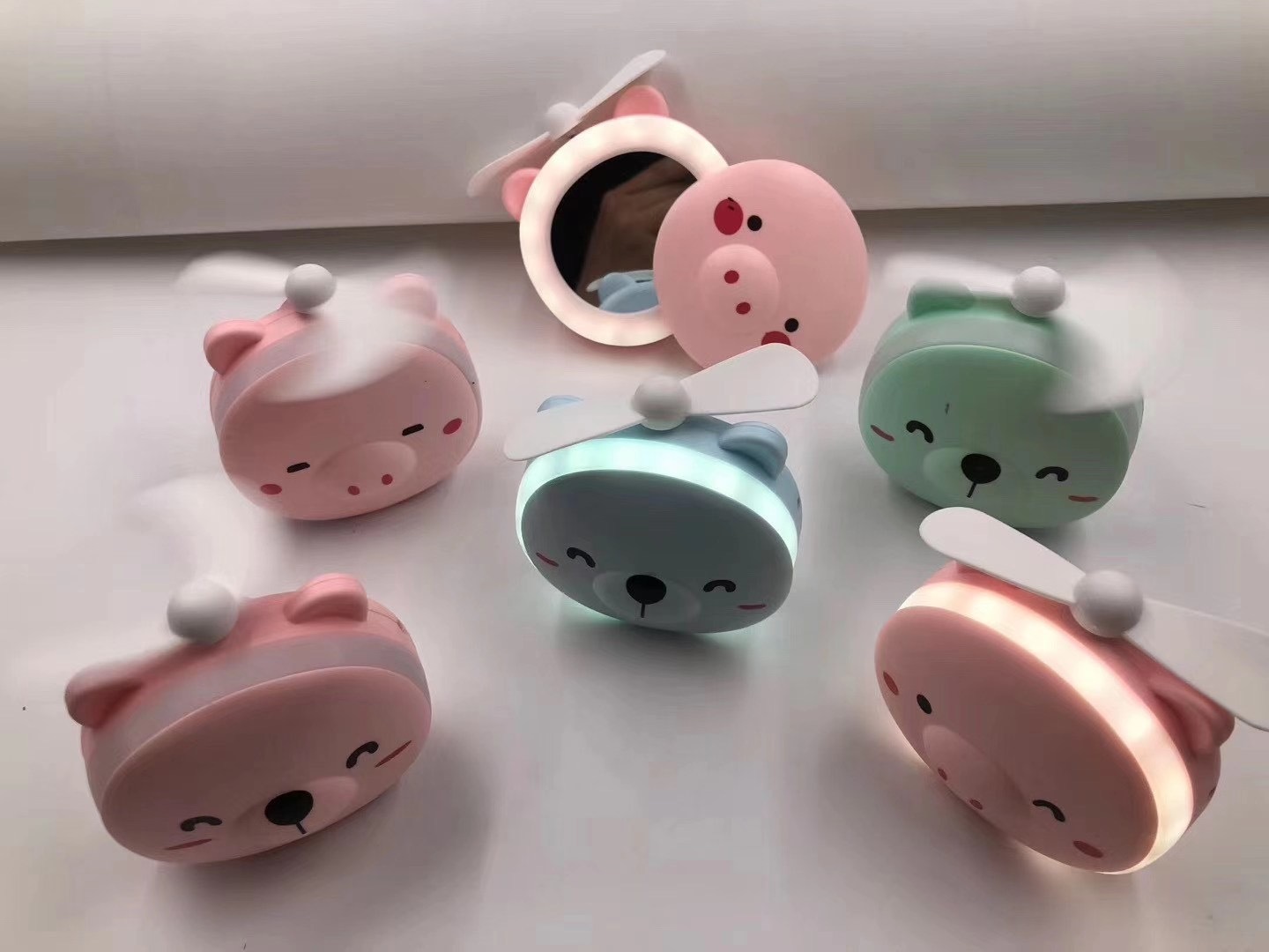 新款LED迷你小风扇 USB充电风扇 卡通手持小风扇 化妆镜