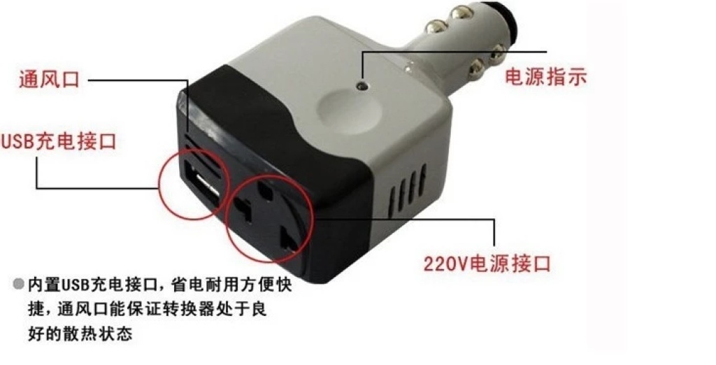 1 本产品用于给手机充电器车载电源转换