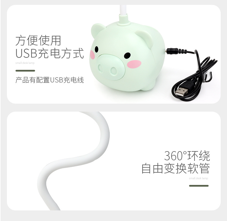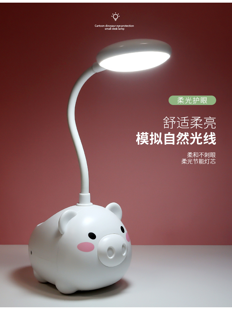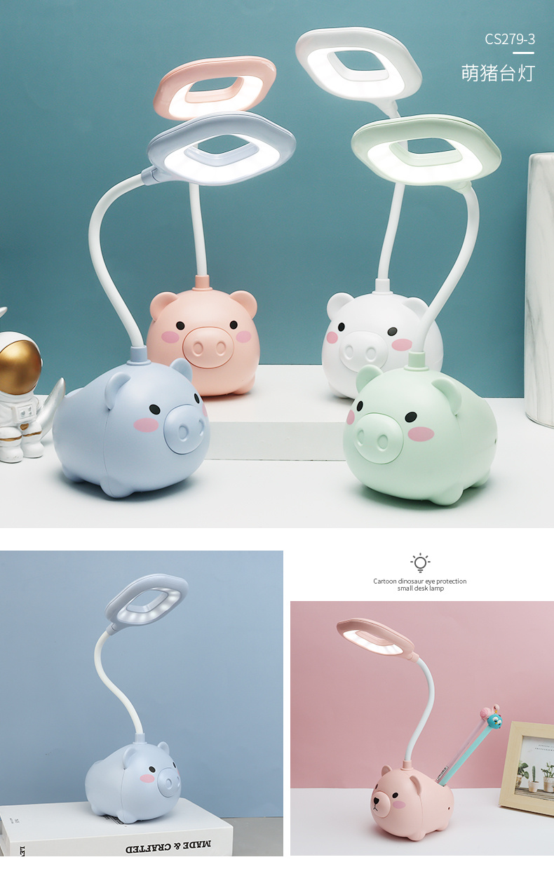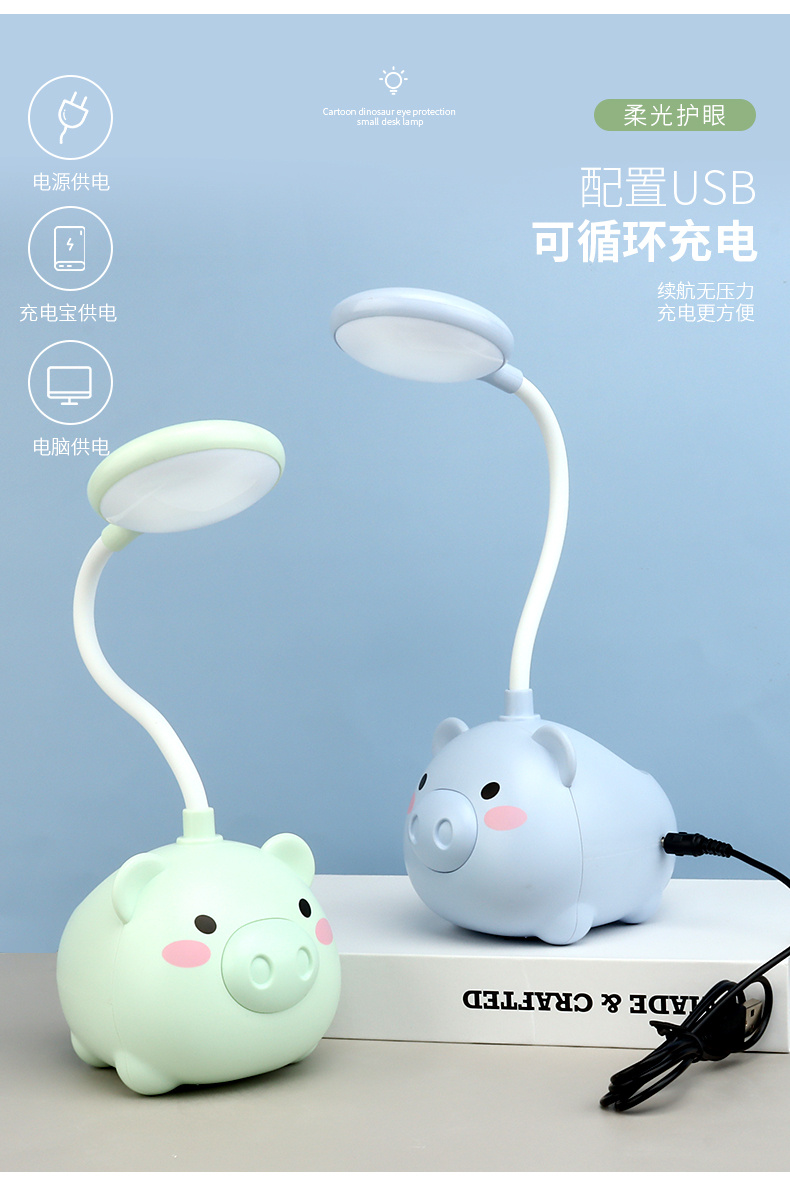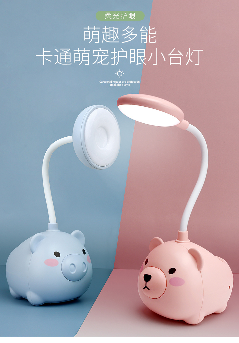 新款LED台灯 卡通USB充电小风扇 小猪笔筒卡通台灯