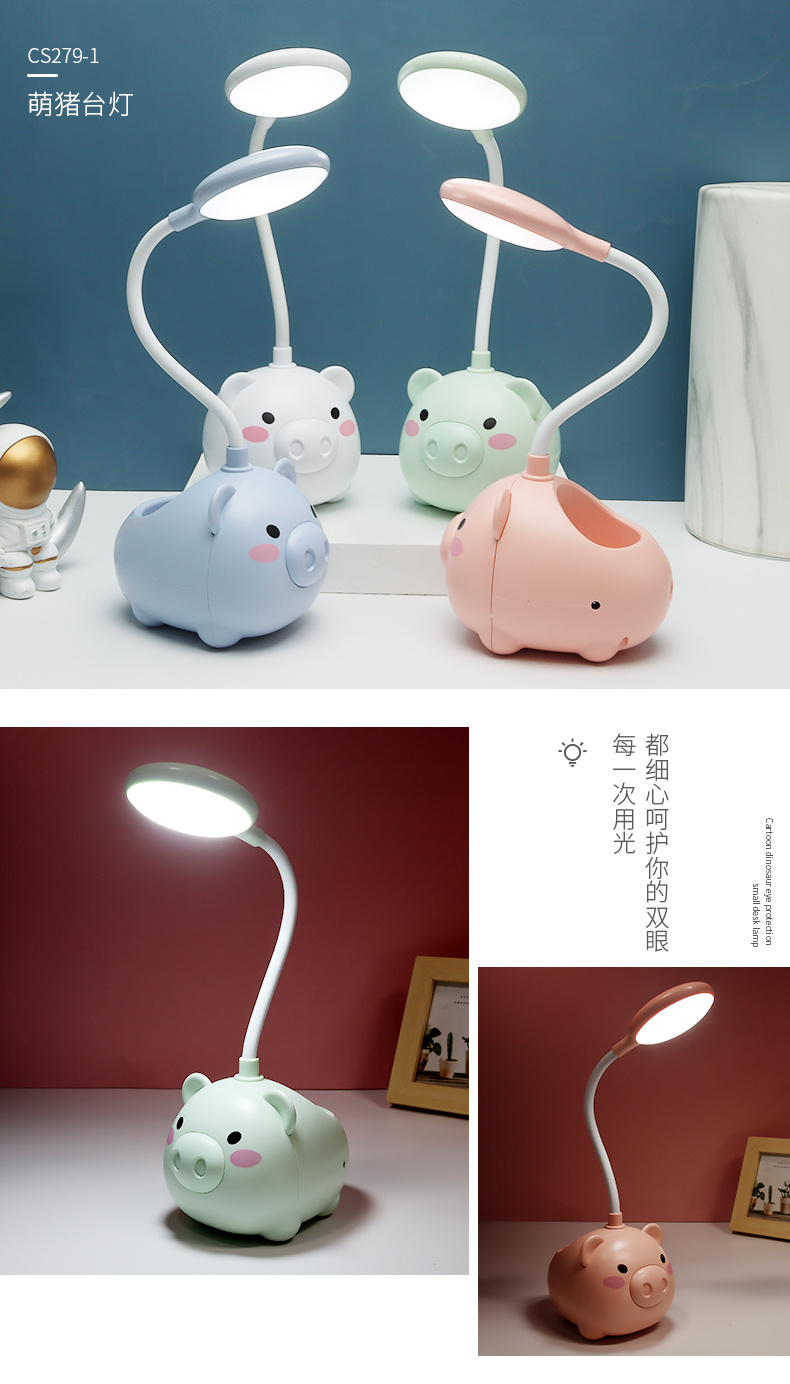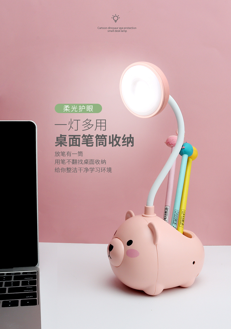 新款LED台灯 卡通USB充电小风扇 小猪笔筒卡通台灯 投诉
