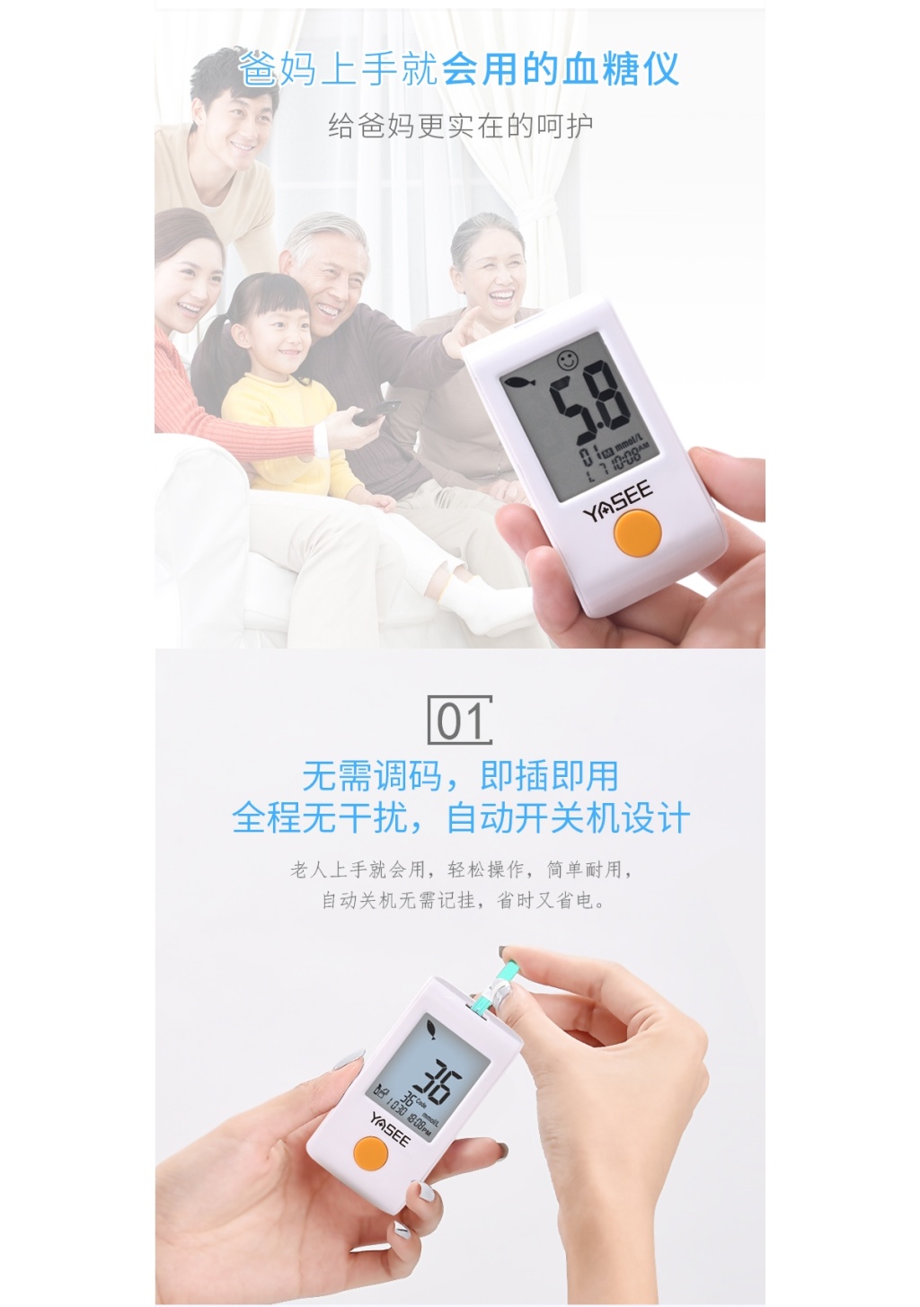 血糖仪 血糖套机1仪器+50片试纸+50个家用测血糖
