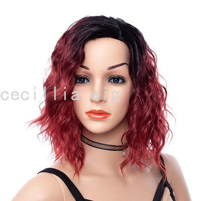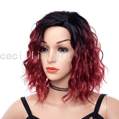 欧美假发 偏分渐变色化纤卷发短款 假发头套