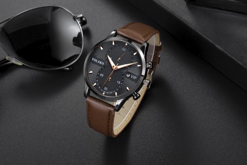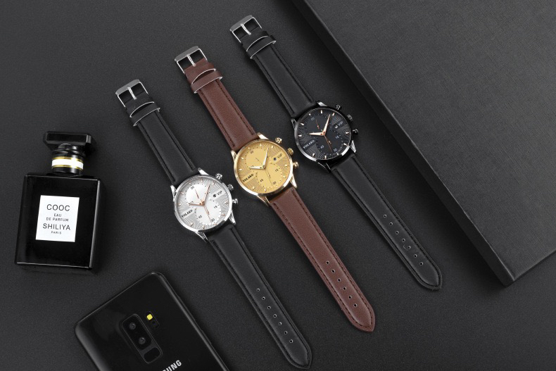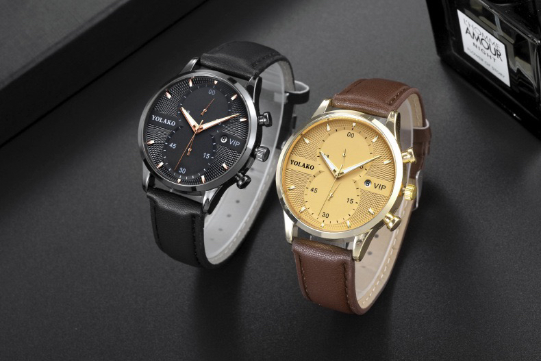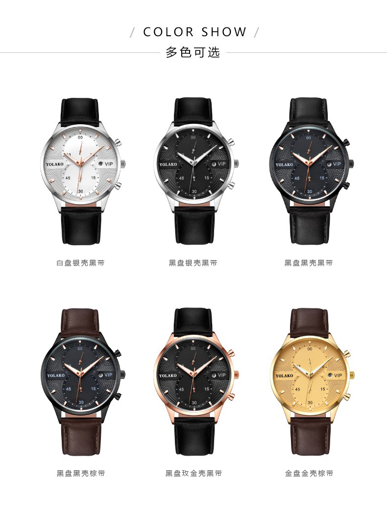 外贸爆款抖音直播热卖欧美时尚日历VIP 男士手表男表皮带款批 投诉