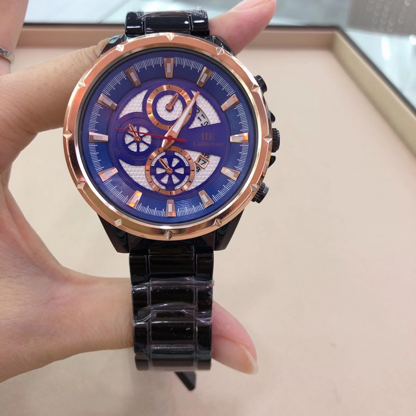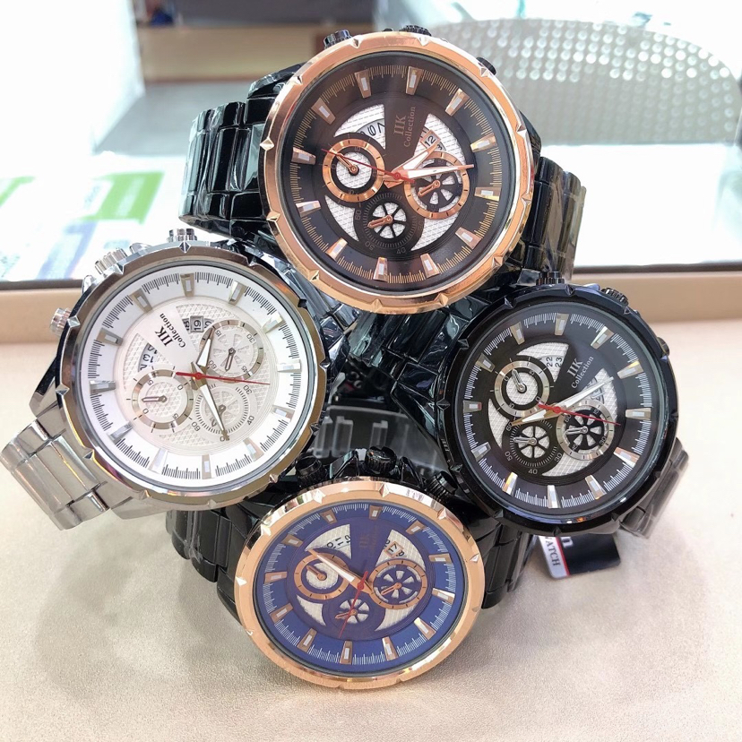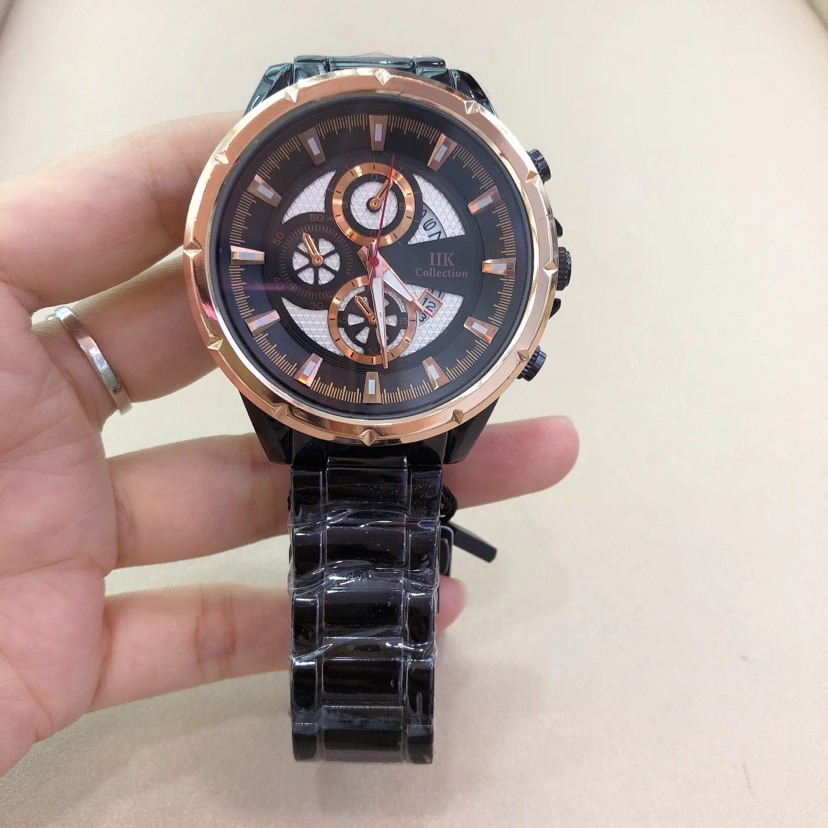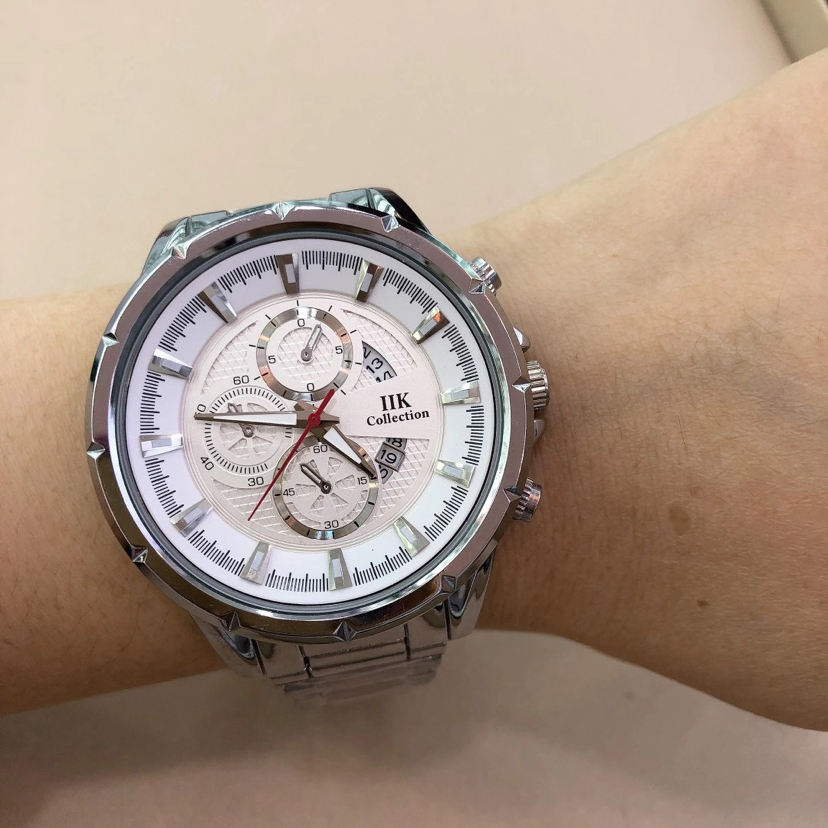 外贸跨境IIK 合金时尚日历防水腕表 个性石英男士手表 投诉