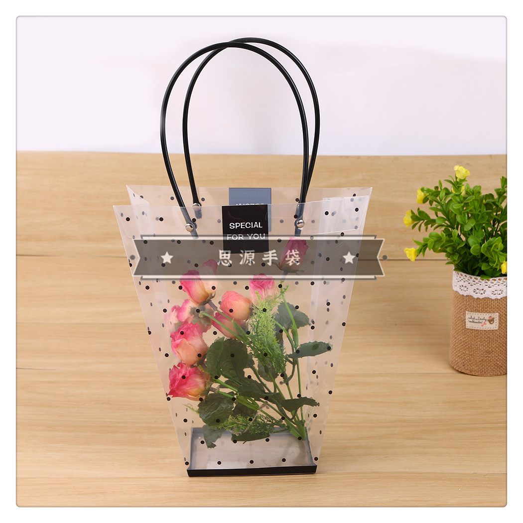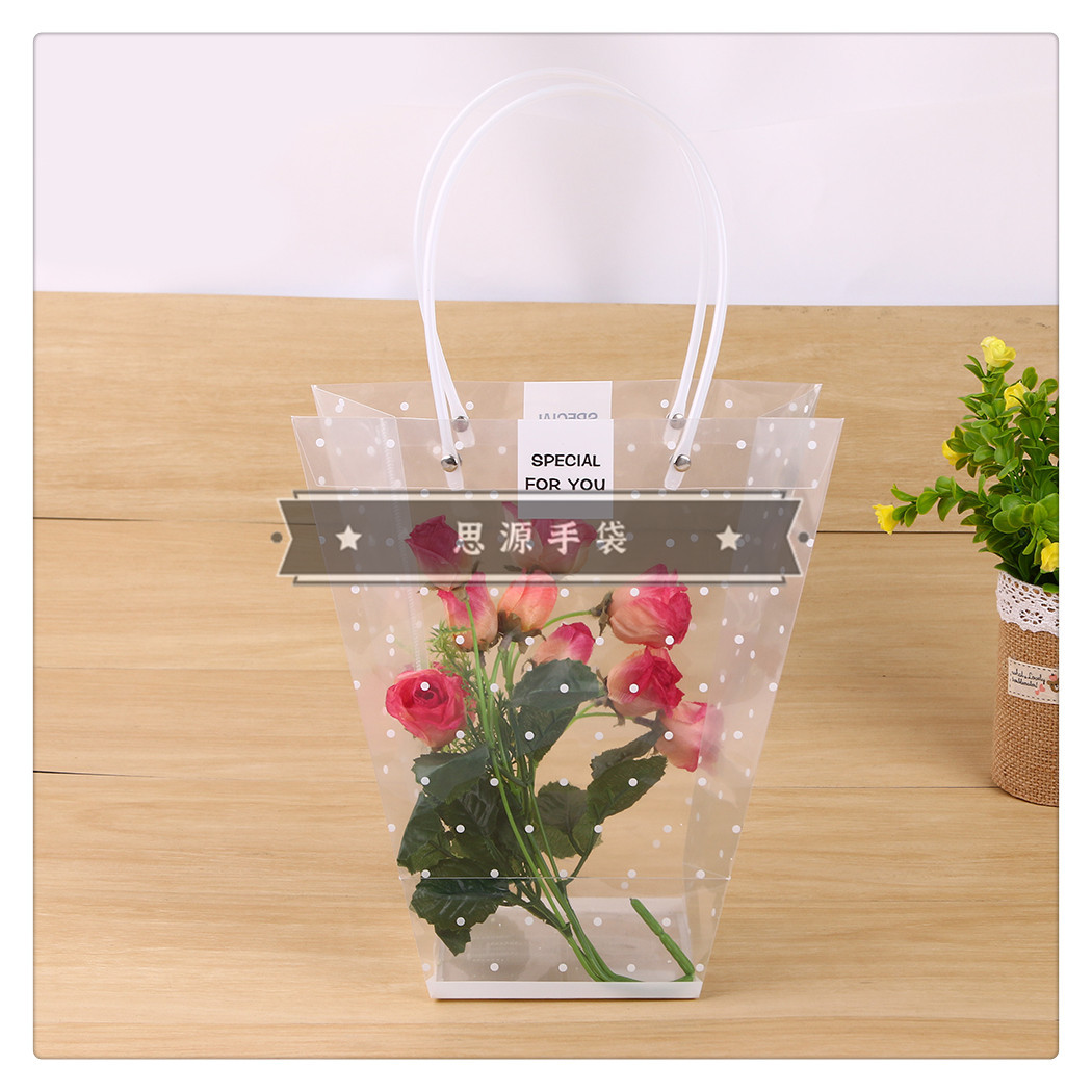 产品名称:鲜花梯形透明手提袋礼品袋花袋T形塑料多肉玫瑰花袋长柄提袋