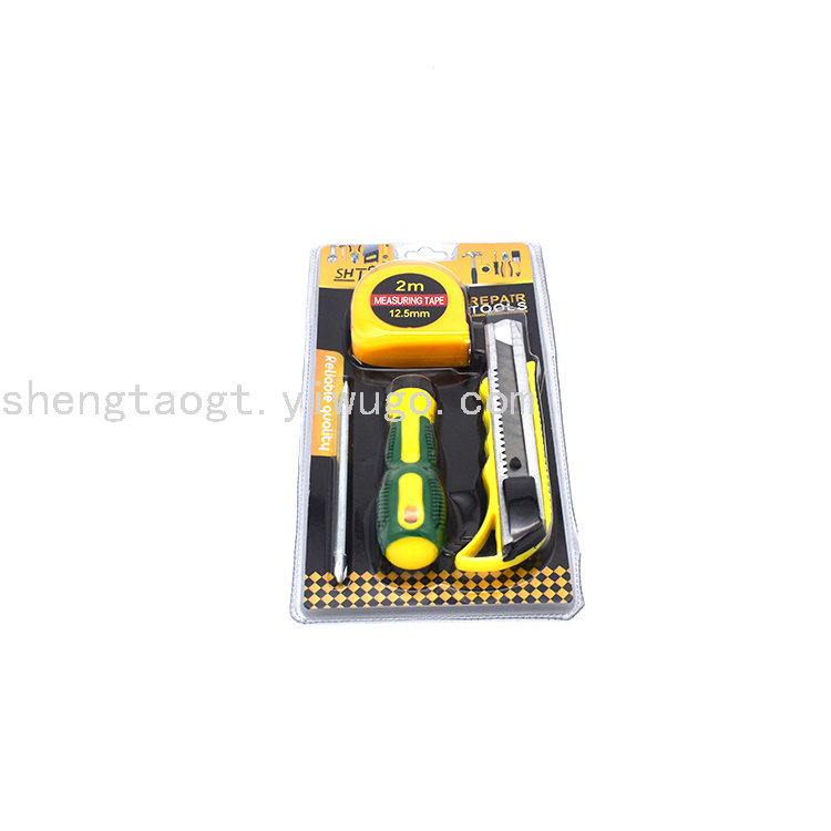 SHTAO盛滔ST-5008组套工具批发黄色2米卷尺螺丝刀美工刀