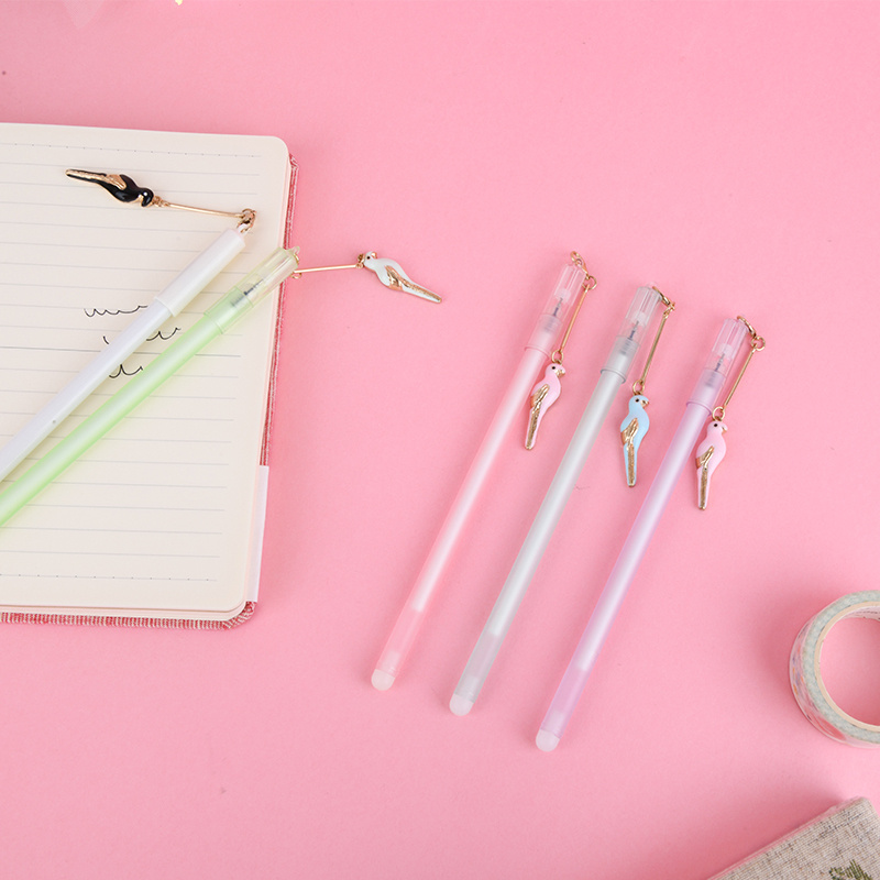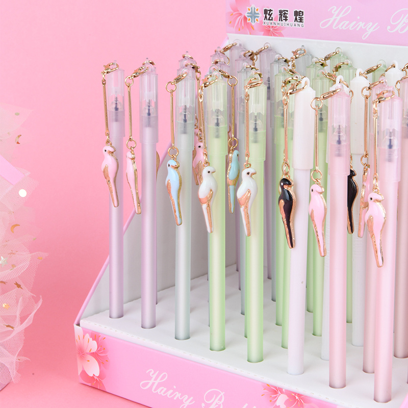 小鸟挂件中性笔金属挂饰造型签字中性笔黑色