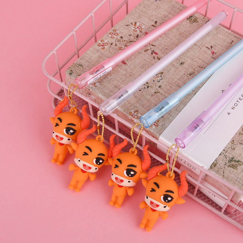 中性笔卡通可爱学生办公文具小牛公仔挂件中性笔批发