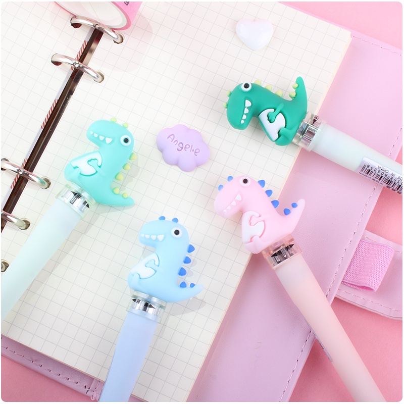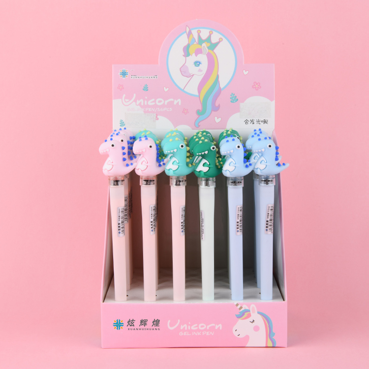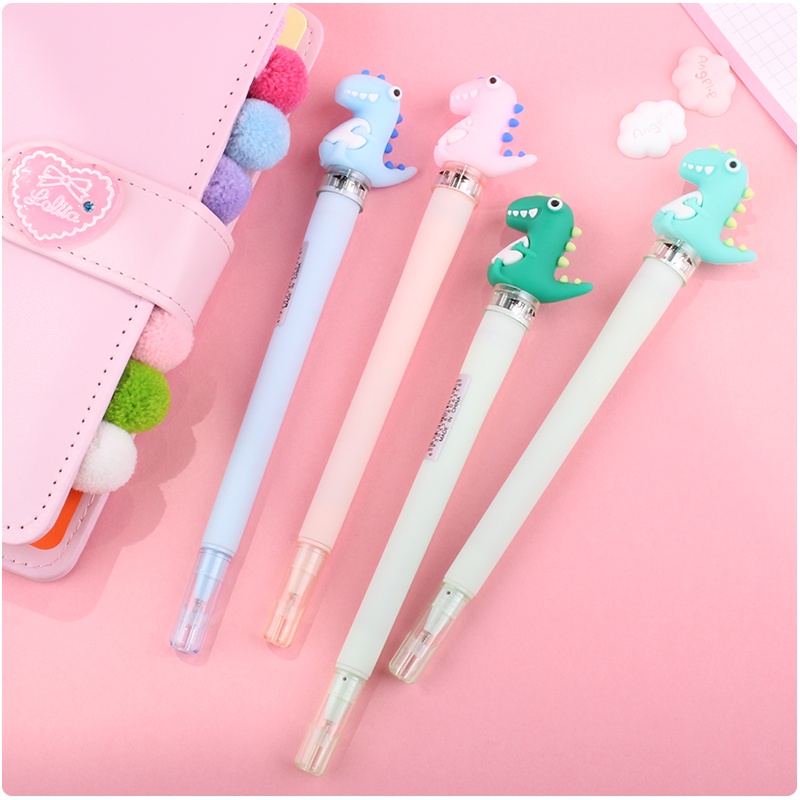 创意卡通可爱少女心恐龙灯光中性笔带灯LED中性笔学生用0.5mm发光