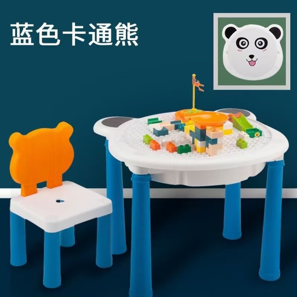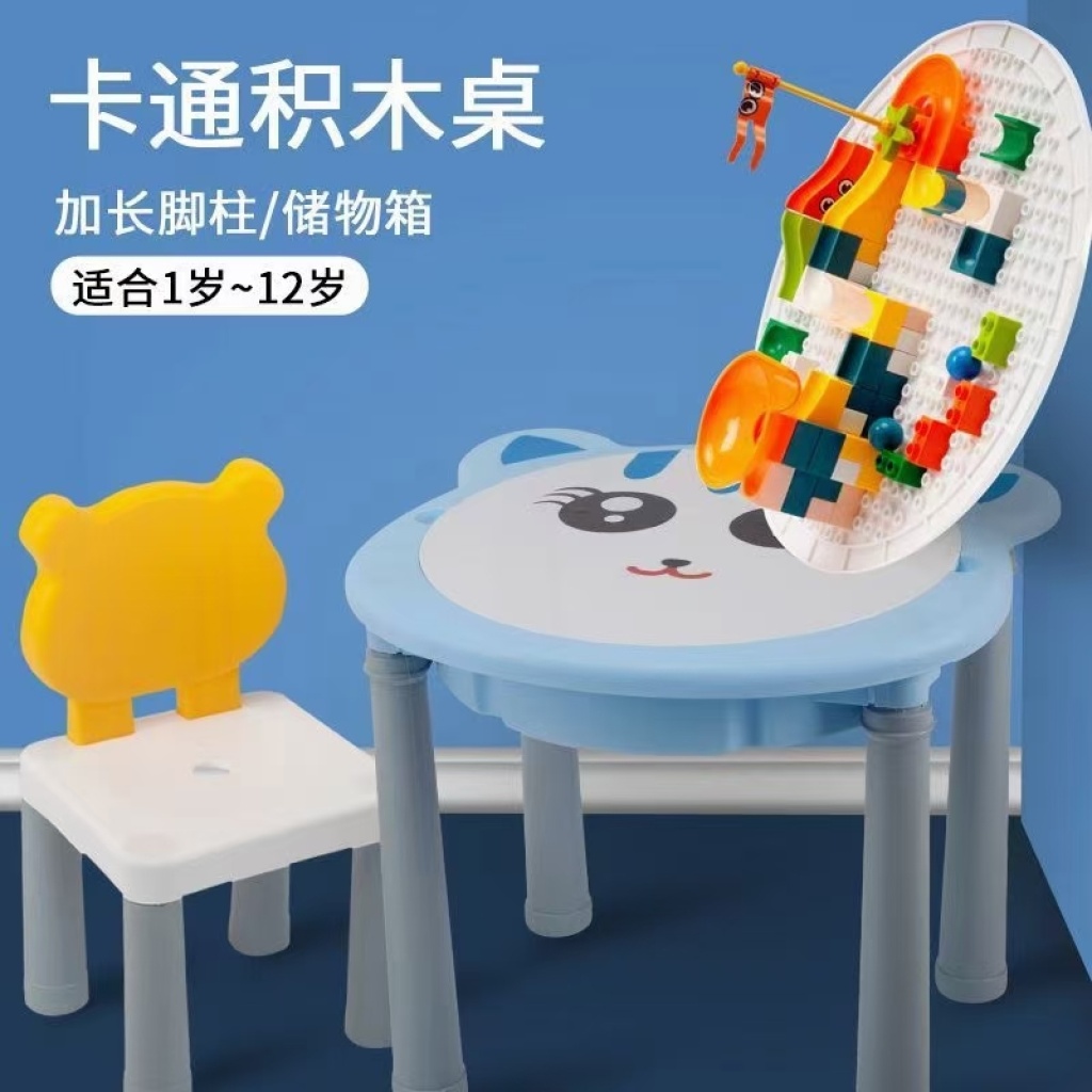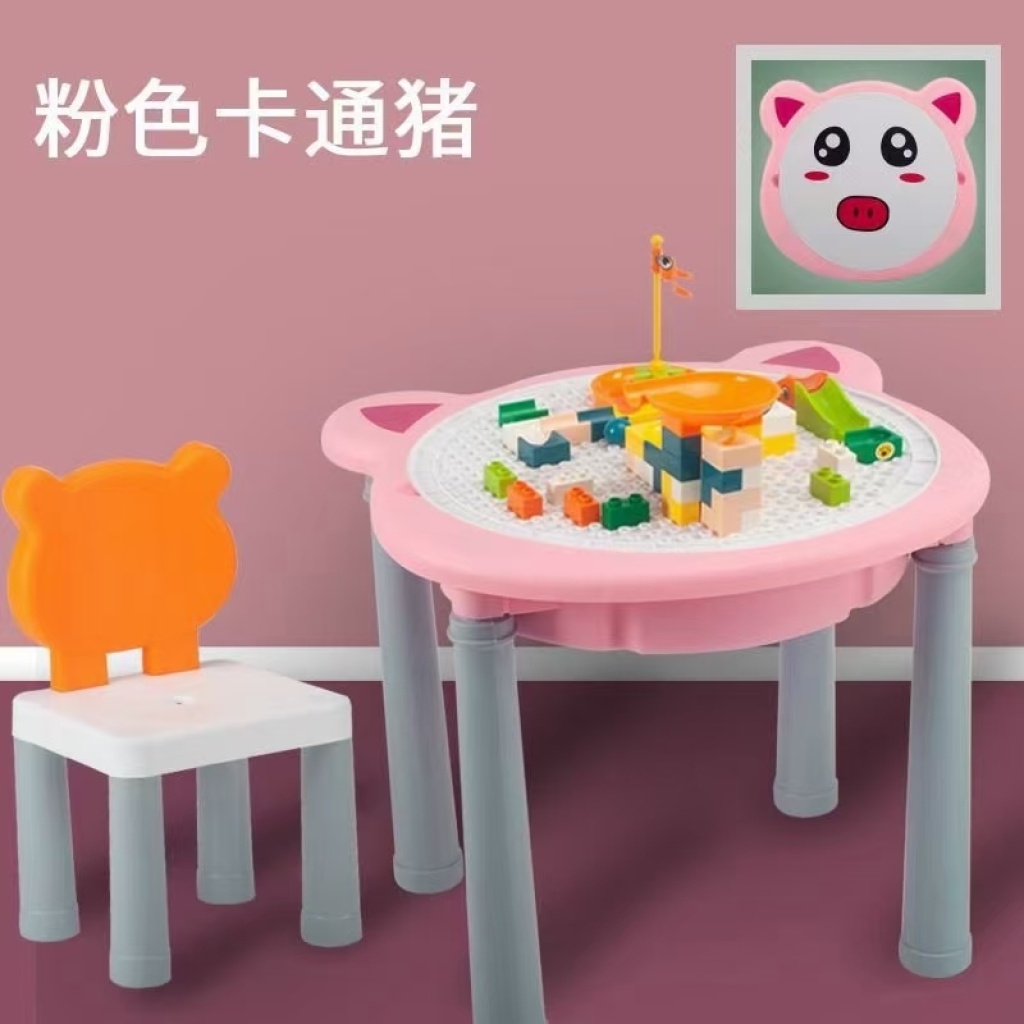 多功能儿童益智积木桌拼装DIY大颗粒玩具学习桌子游戏桌子带椅子