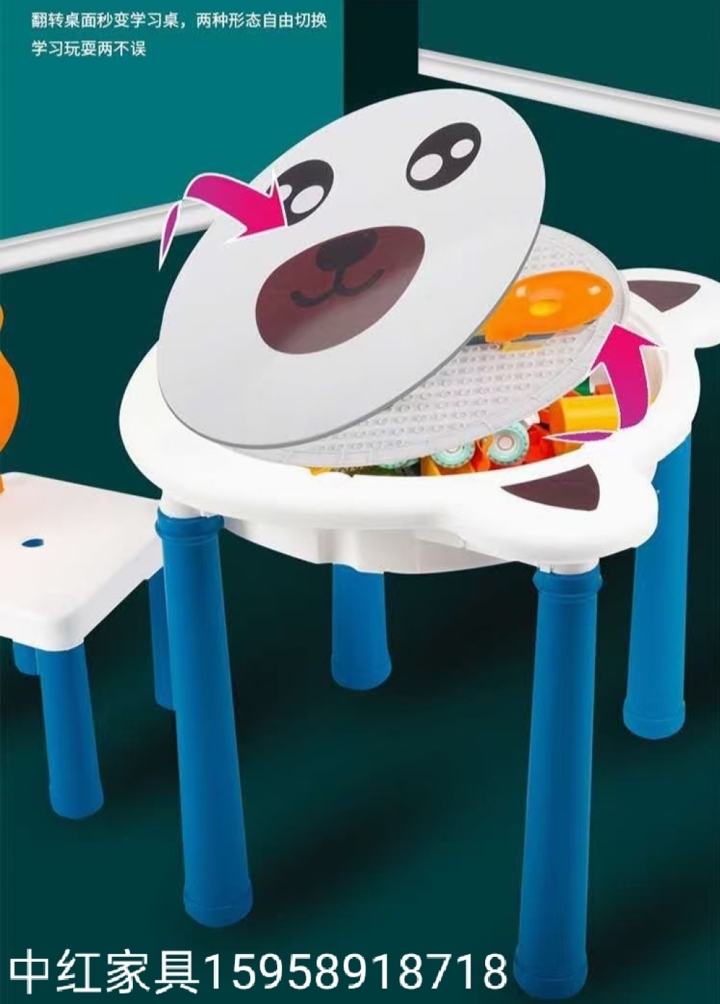 多功能儿童益智积木桌拼装DIY大颗粒玩具学习桌子游戏桌子带椅子 投诉