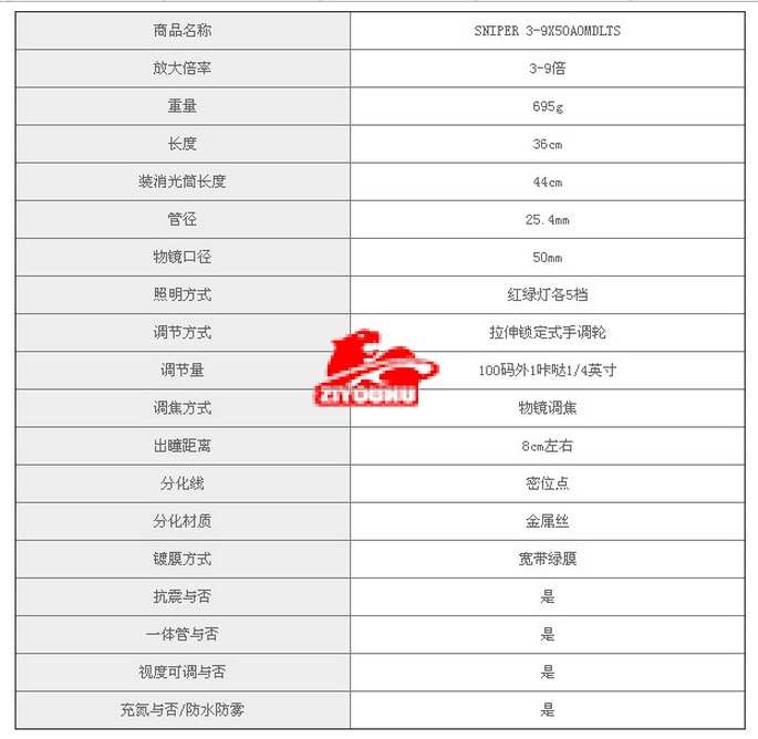 • 货号/型号: 狙击手3-9X50AOE金字版玻璃分化