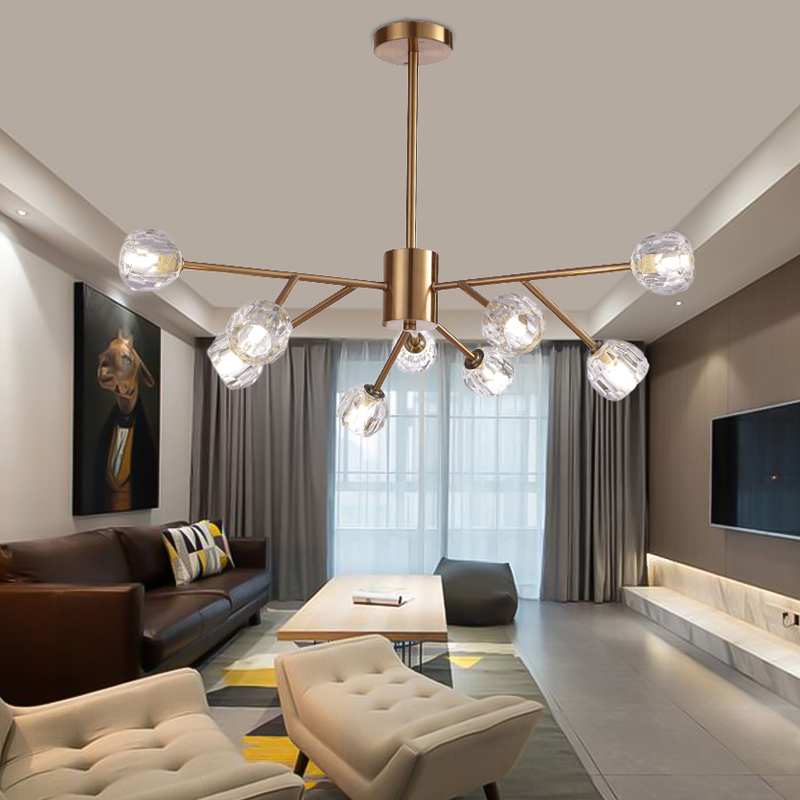 水晶美式餐厅灯客厅吊灯饰网红魔豆分子灯北欧灯具