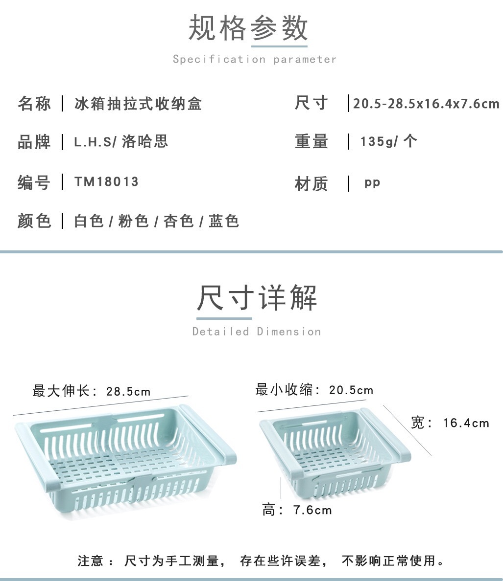 抖音爆款 可伸缩冰箱分层水果沥水整理篮 抽拉式保鲜收纳盒置物盒 投诉