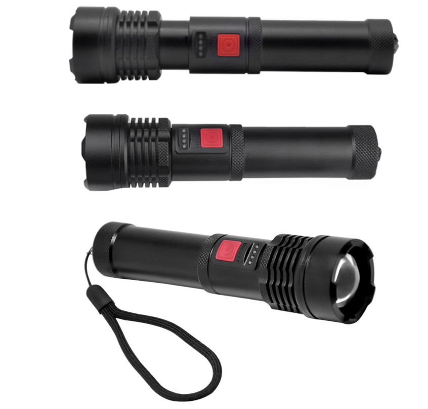 爆款P50强光变焦手电5档调光电显内置充电强光手电