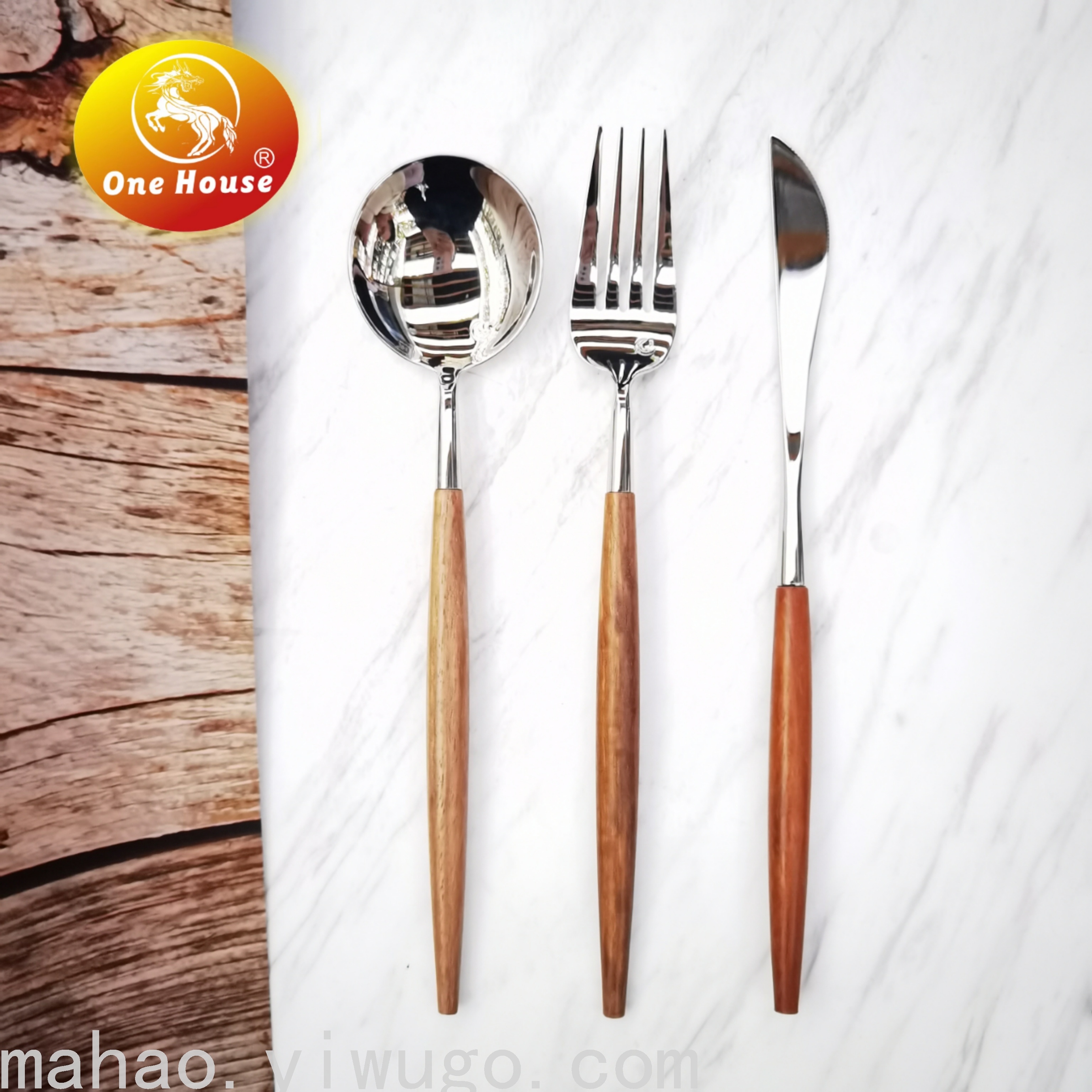 不锈钢木柄刀叉勺餐具