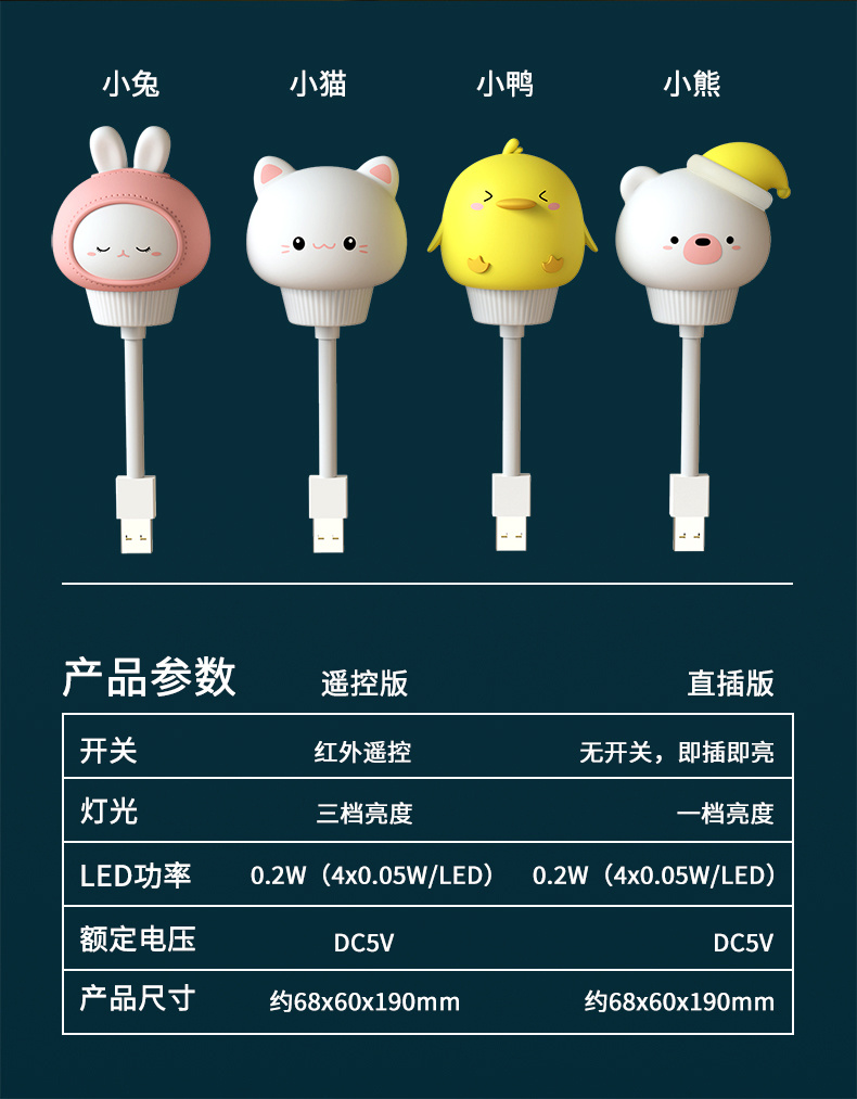 颜色:白色(小猫)/粉色(兔子)/黄色(小鸭)/白色(萌熊)