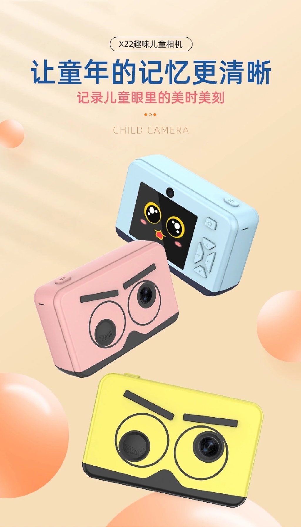 跨境高清儿童相机双摄像头X22卡通学生数码照相机玩具拍照录像机