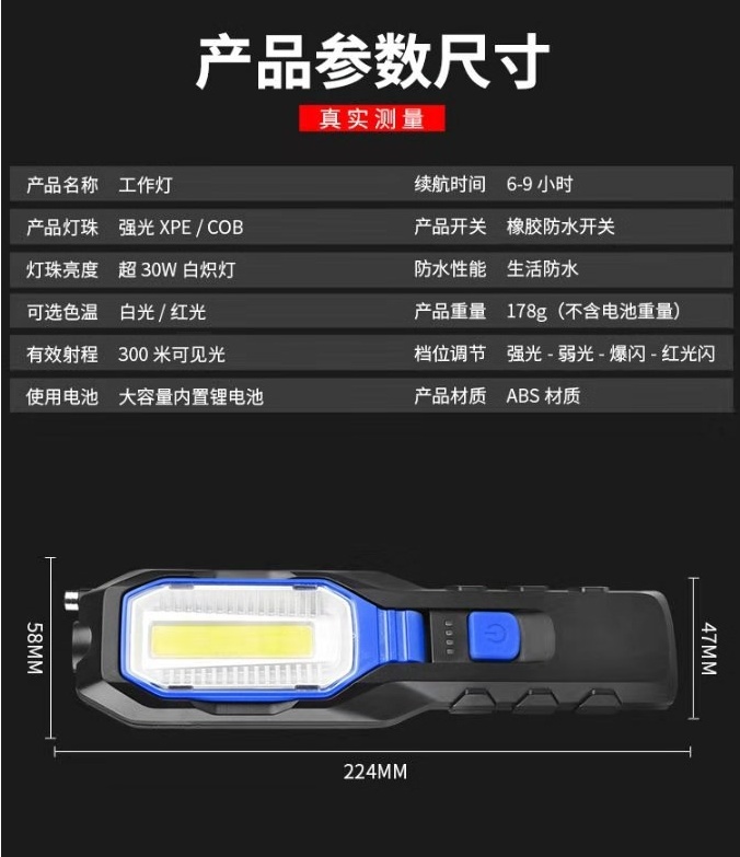LED工作灯汽修维修灯超亮强光工业强磁铁防摔可充电手电筒便携 投诉