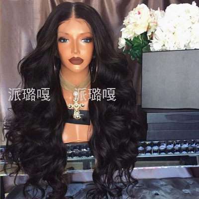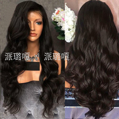 假发 欧美女士前蕾丝侧分中分长卷发黑色蓬松大波浪化纤头发套 English | 投诉