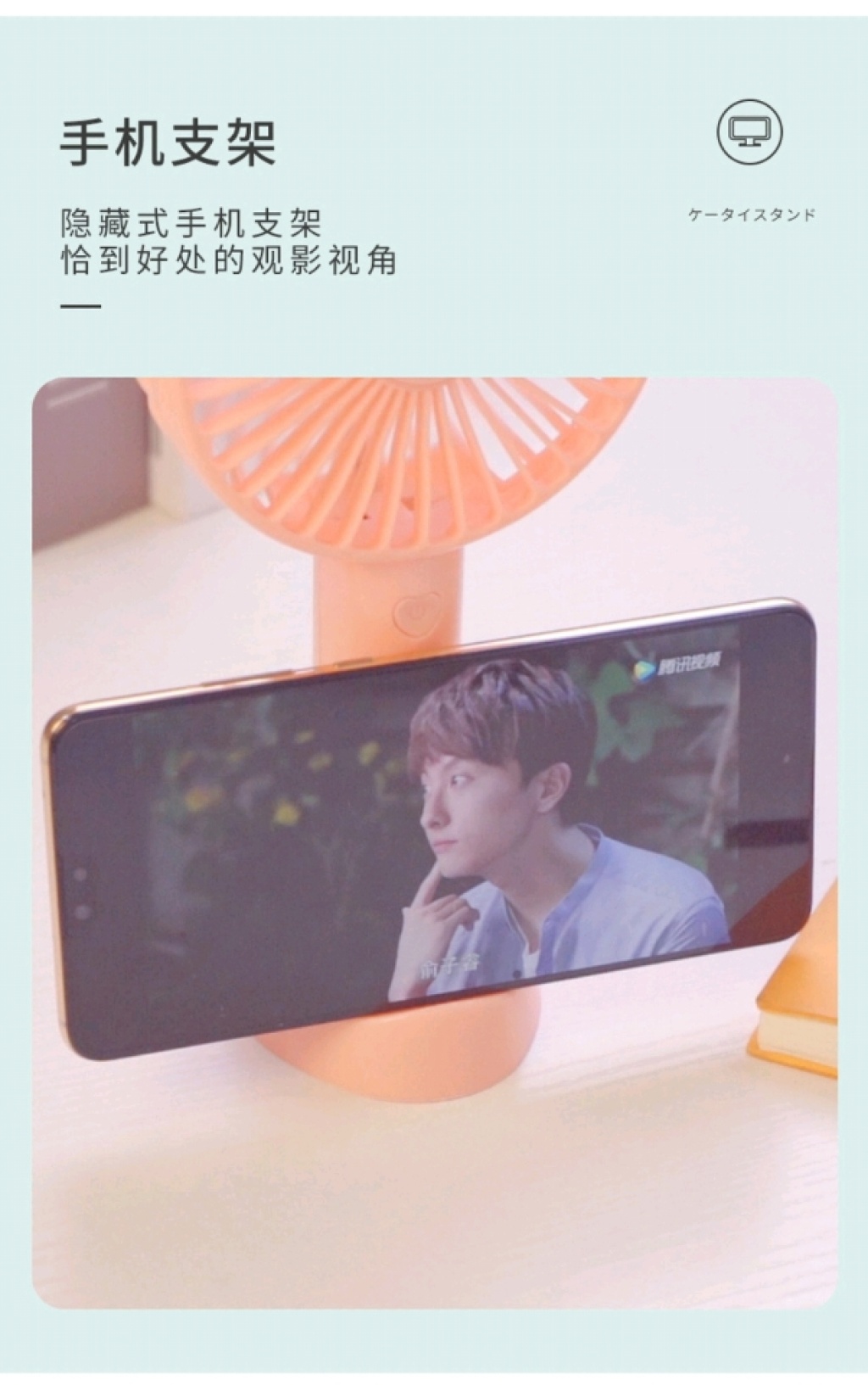 可加香薰驱蚊水手持风扇带手机支架