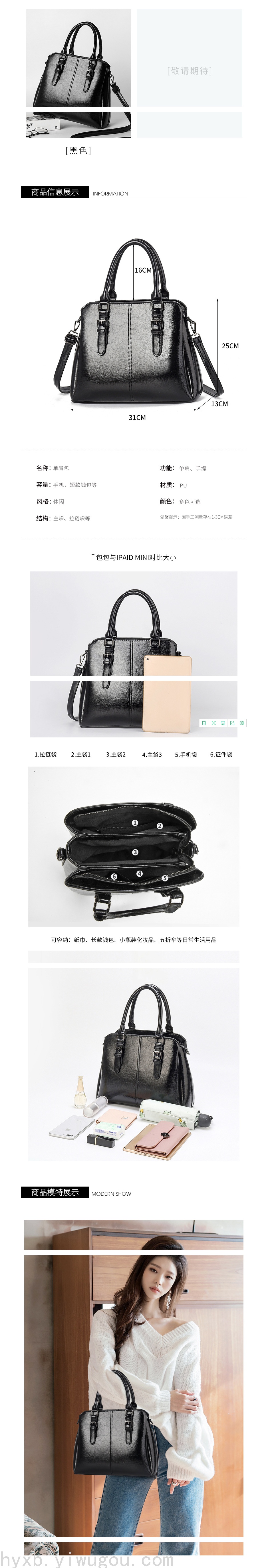 女包新款包大容量休闲包单肩包PU包时尚女式手提包 投诉