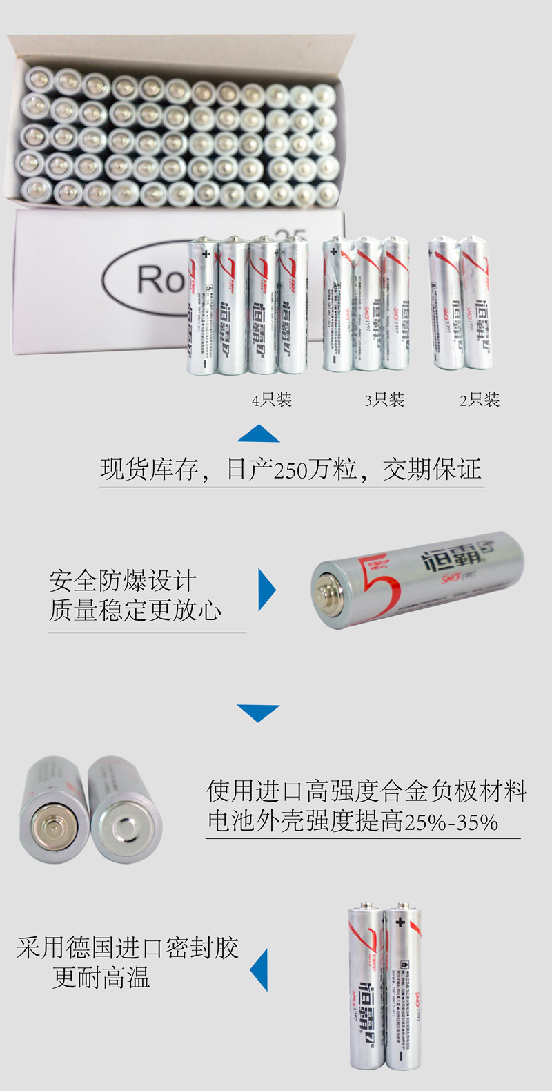 公司成立与1997年,是一家专业生产制造、销售一次性干电池厂家。现拥有各类型生产线6条,年产能超过5亿支标准无汞干电池。工厂位于义乌市佛堂镇工业区,占地15亩。公司主要销售市场包括美国、墨西哥、西班牙、印度、阿联酋国家、埃塞俄比亚等。