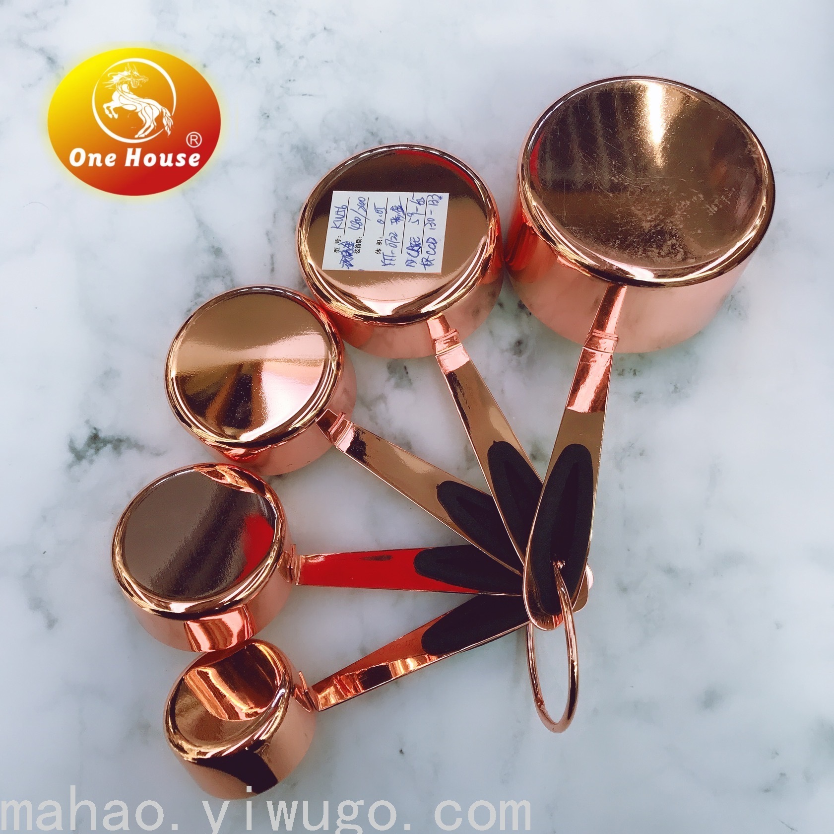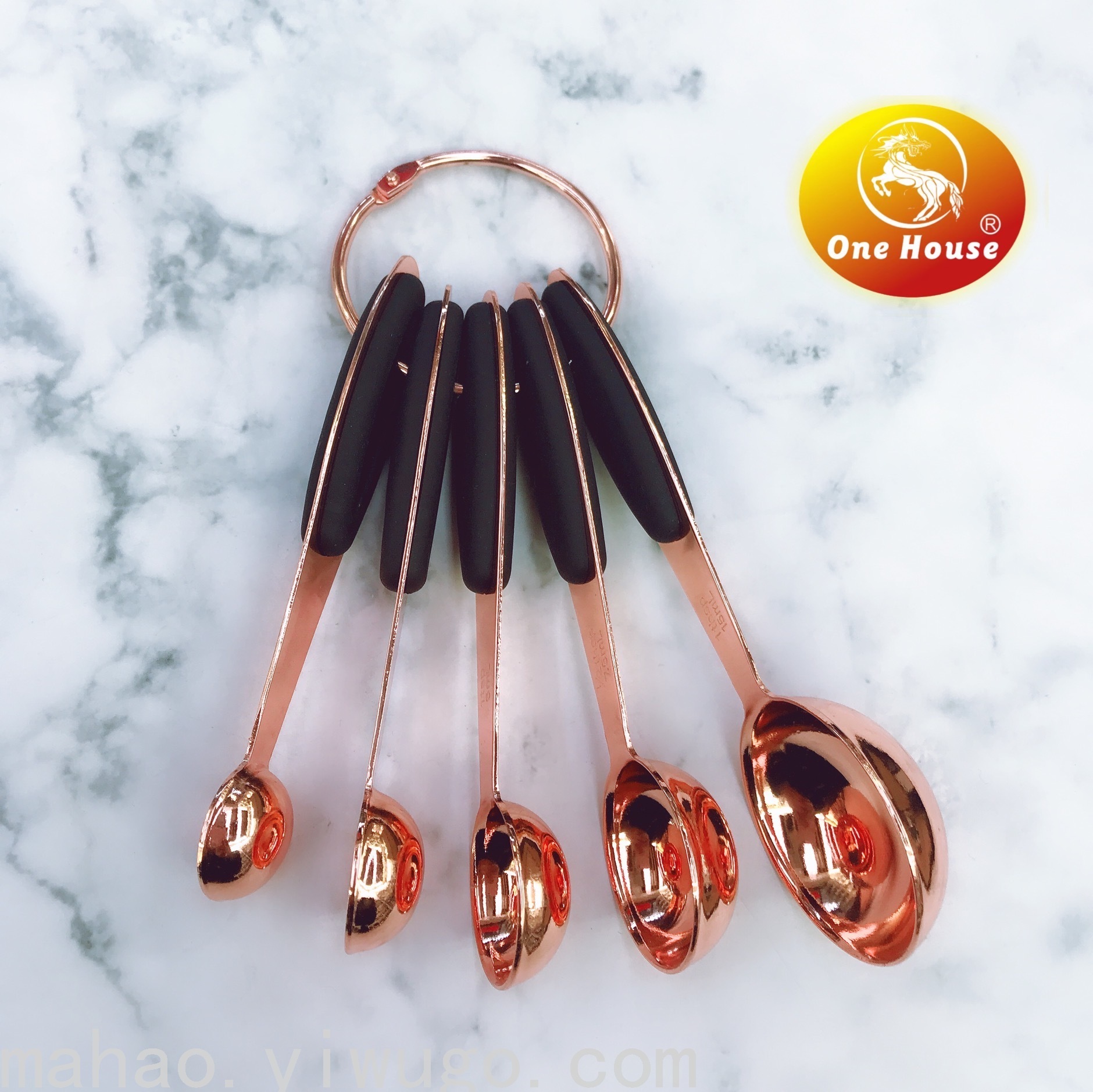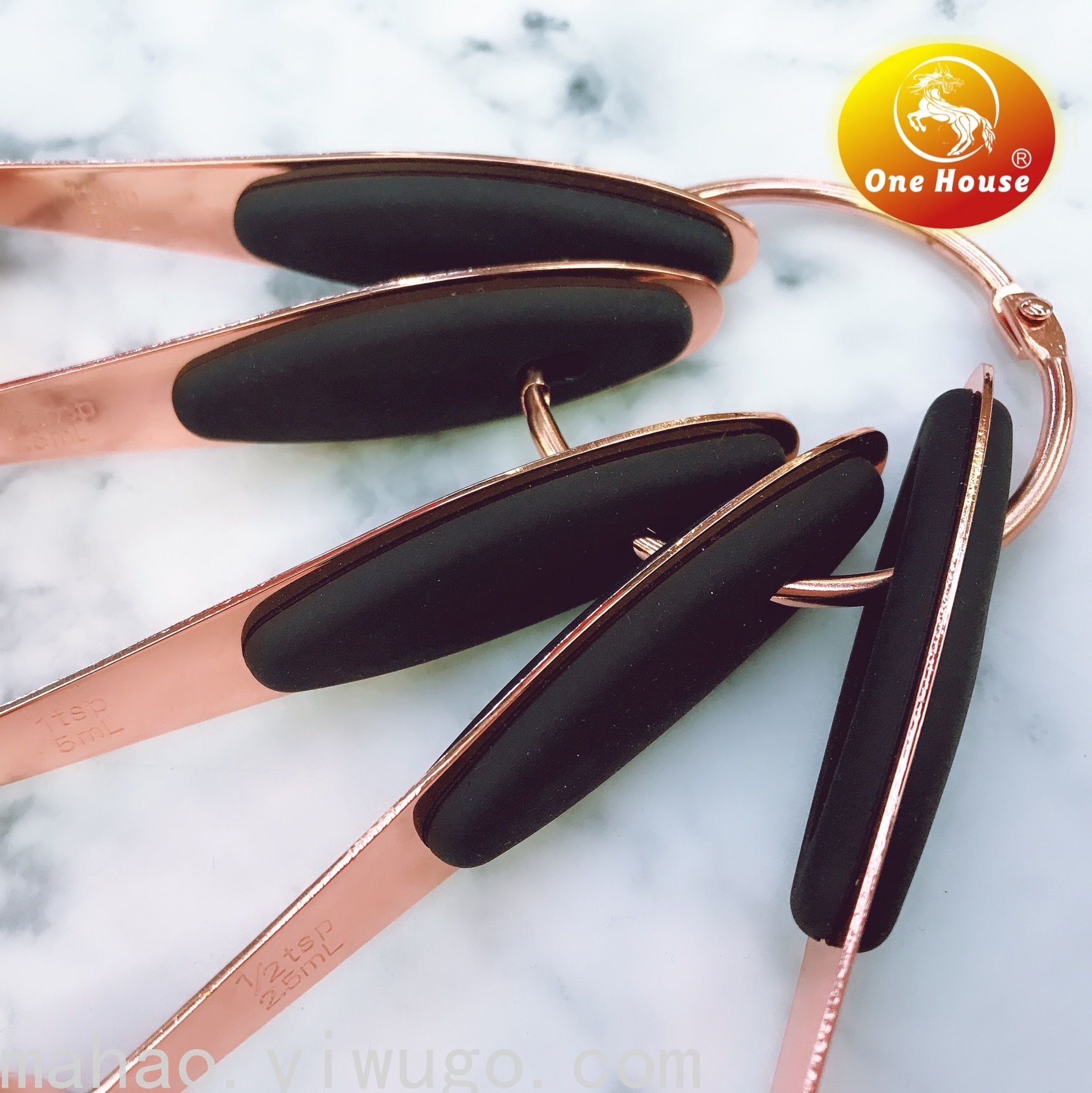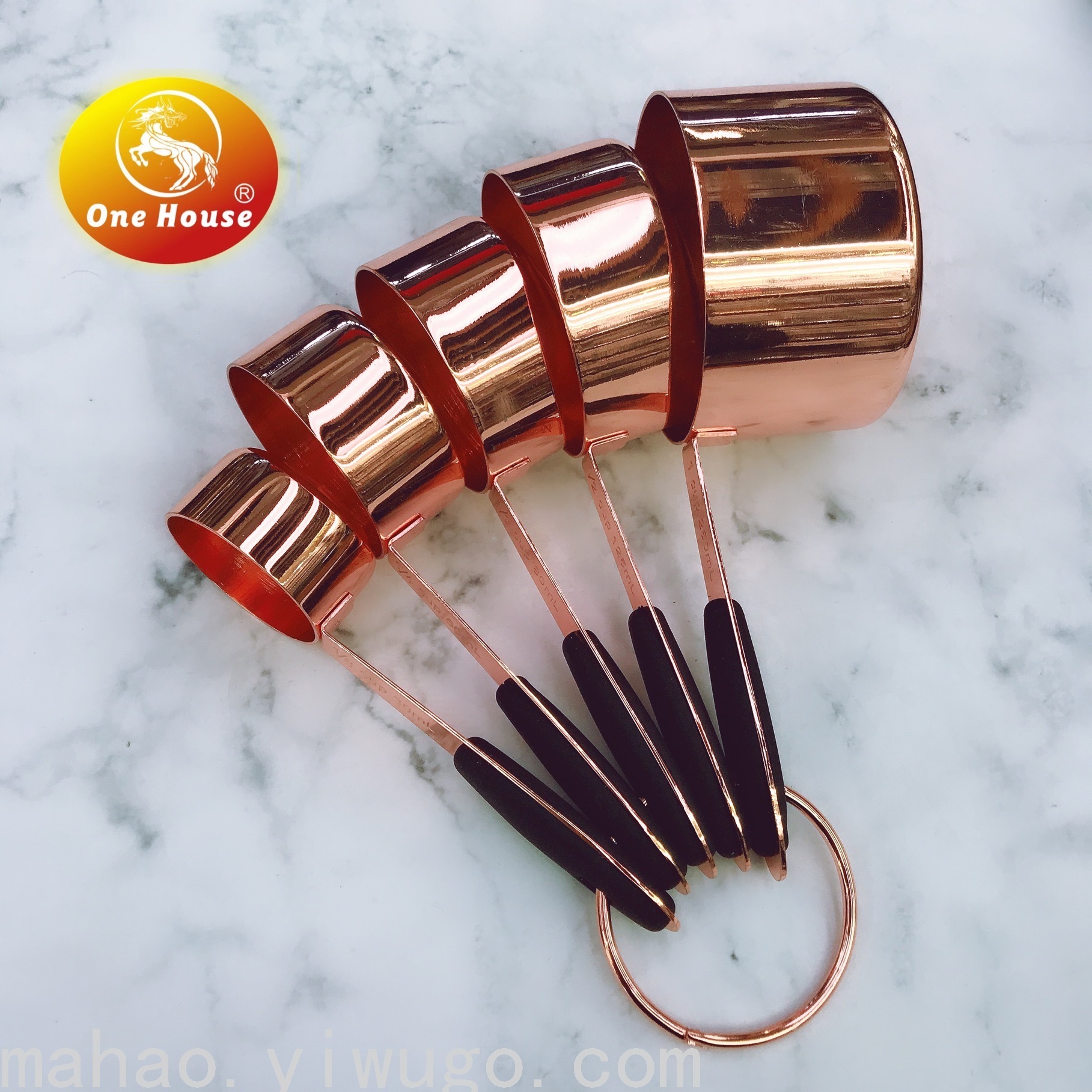 不锈钢橡胶柄玫瑰金色量杯量勺