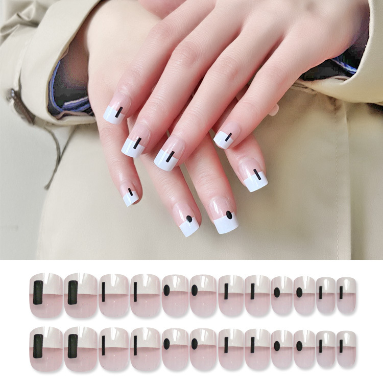 定做热销款方头超软法式穿戴甲24片盒装成品美甲甲片配背胶贴